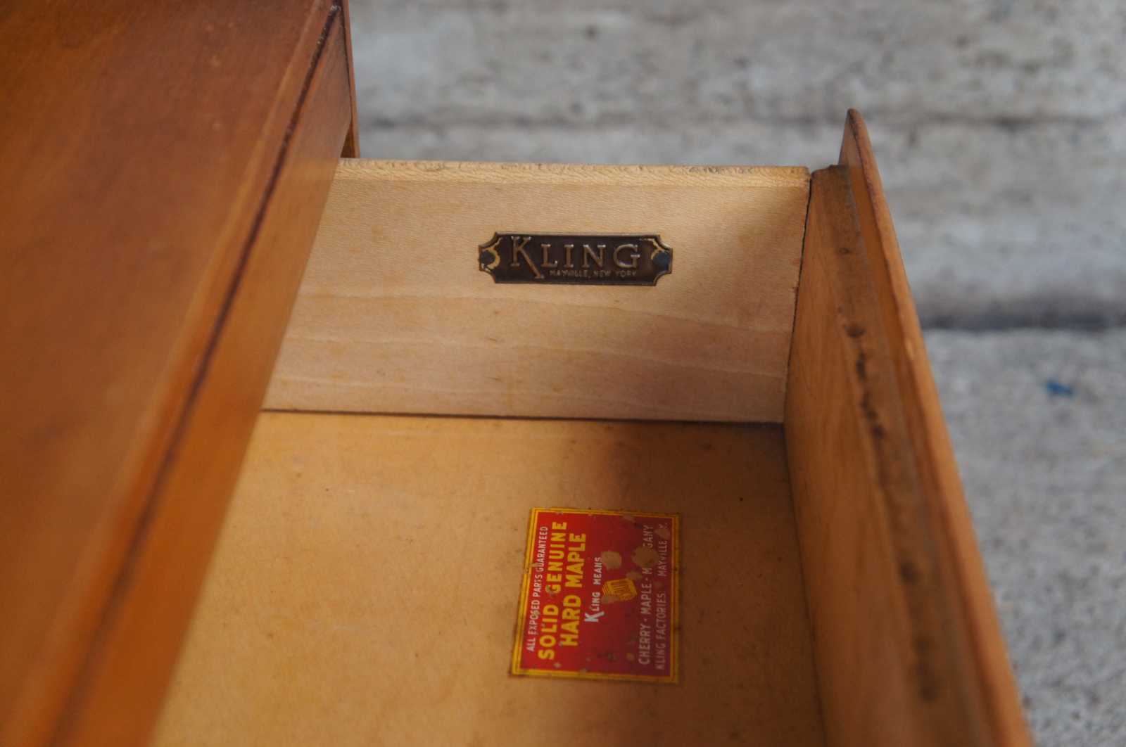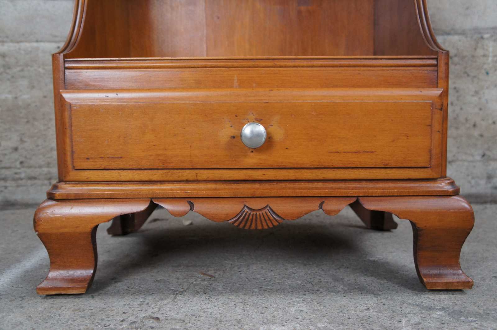 Vintage Kling solid hard maple nightstand or side table featuring serpentine form with a two tiered design with cubby and lower drawer.