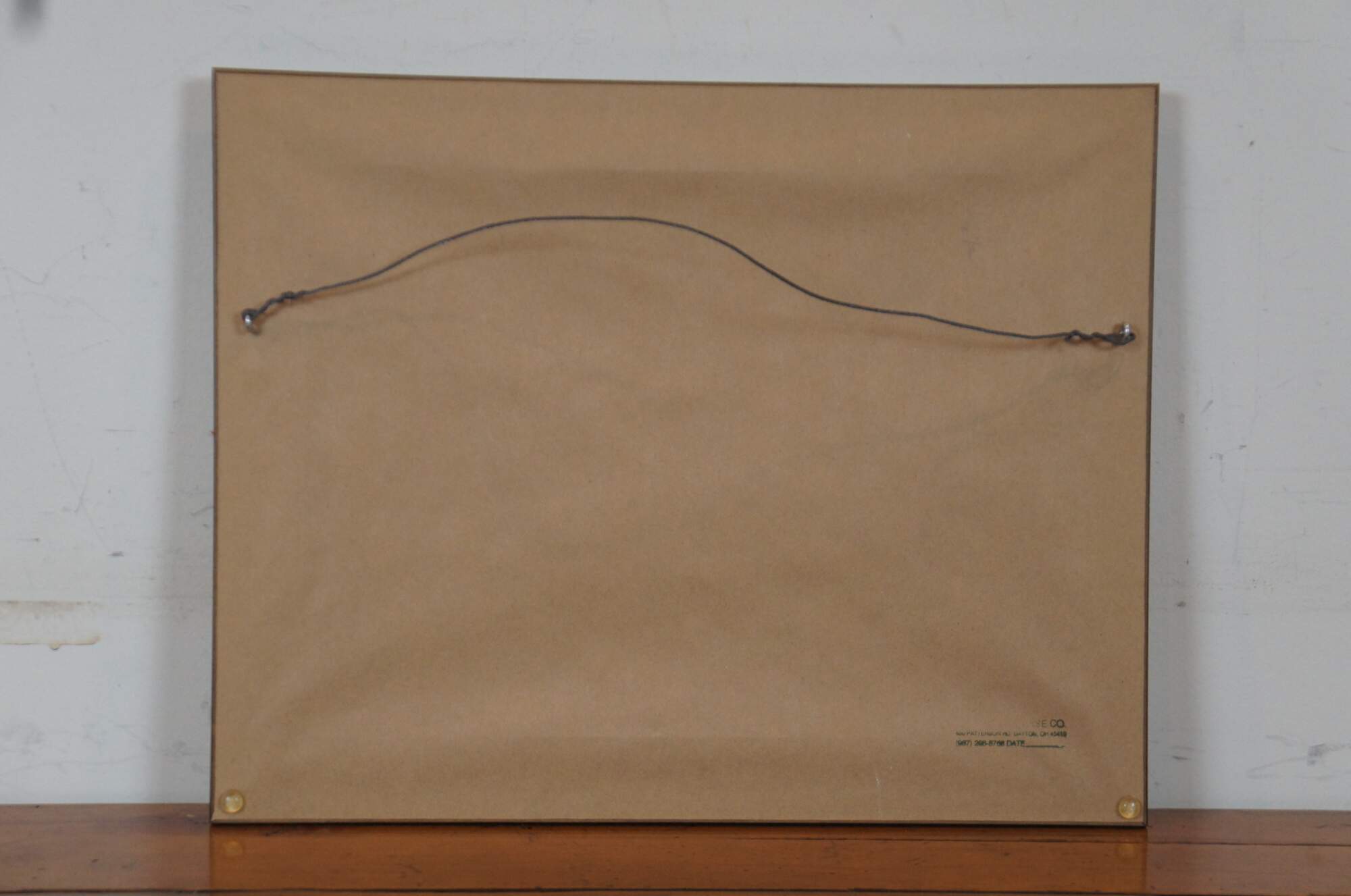 Vintage framed impressionist watercolor folk painting showing a park landscape with three figures having a picnic.
