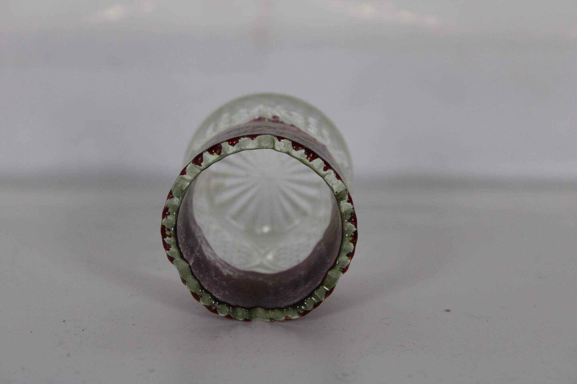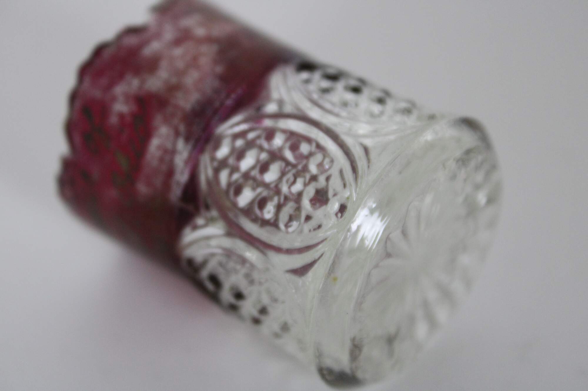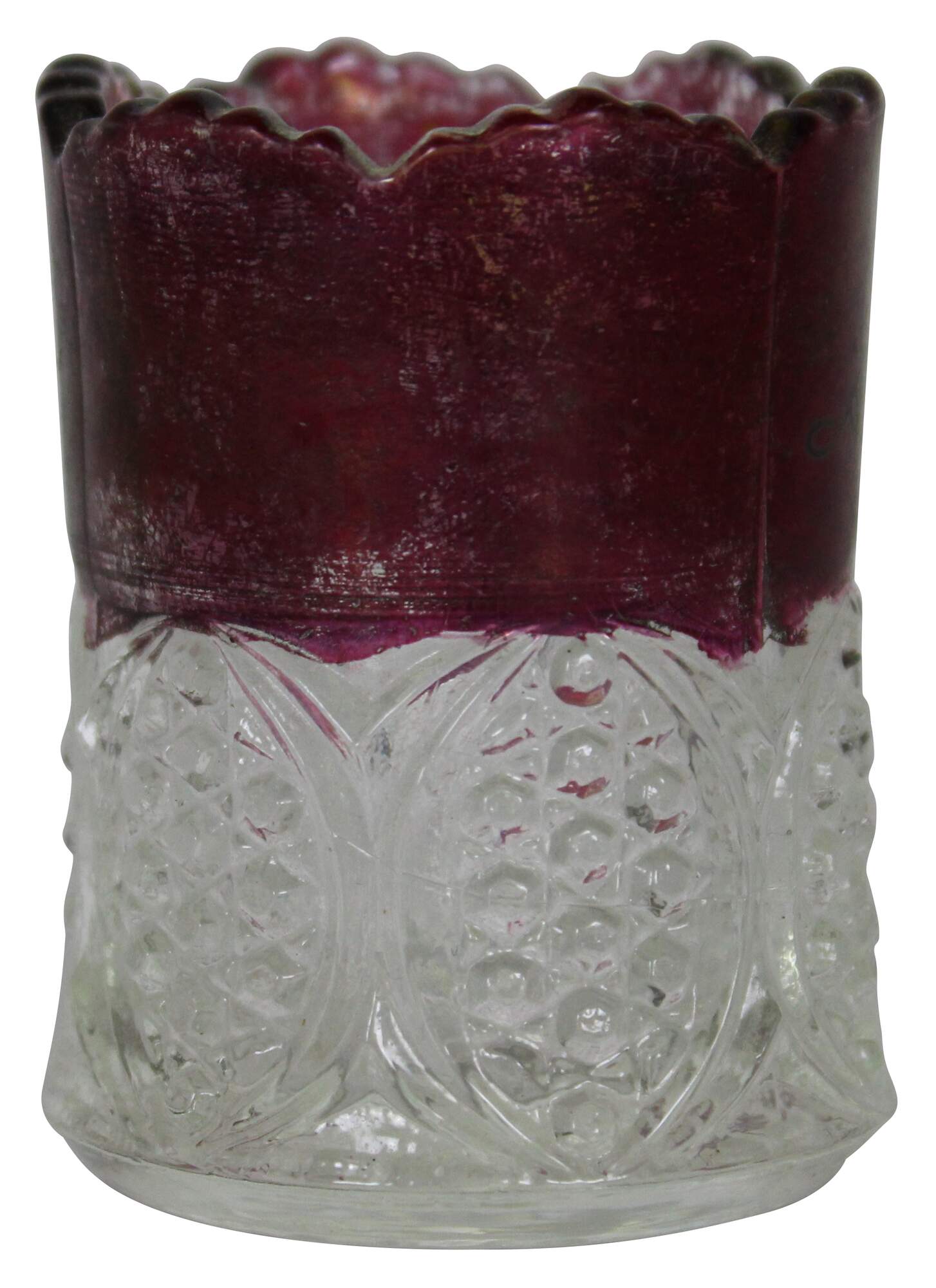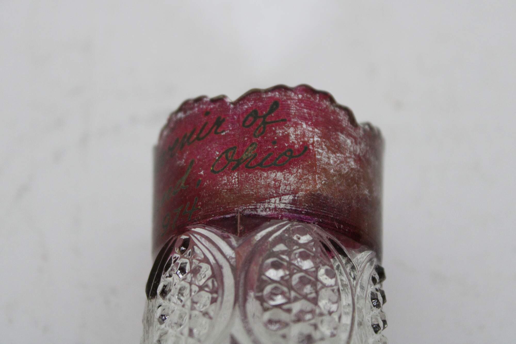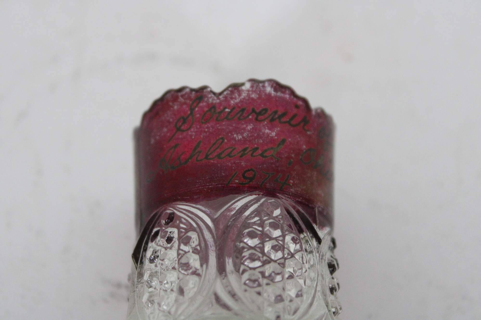 Vintage early American pattern ruby topped cut glass souvenir toothpick holder from Ashland, Ohio fair 1974.