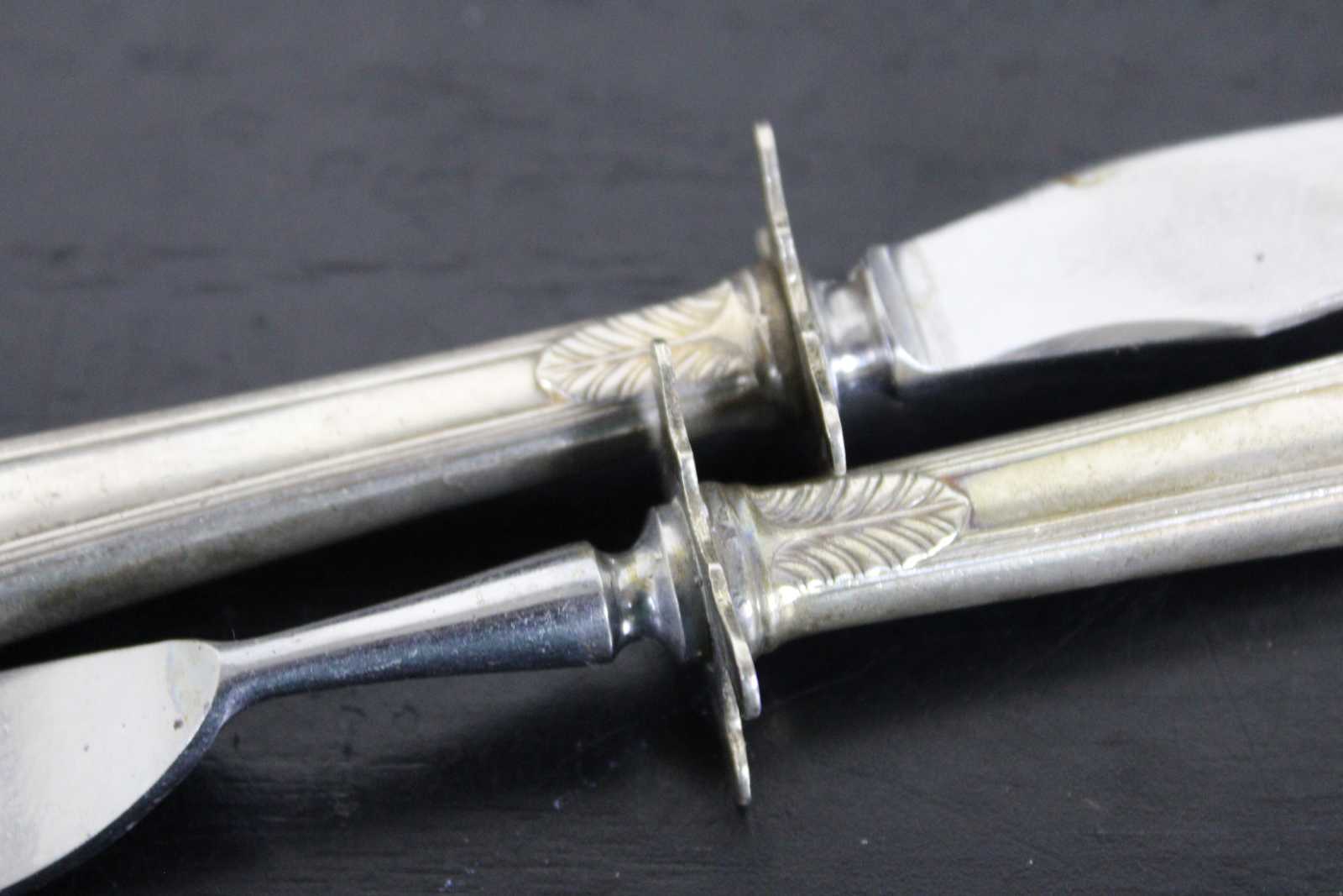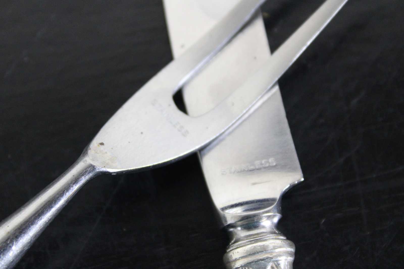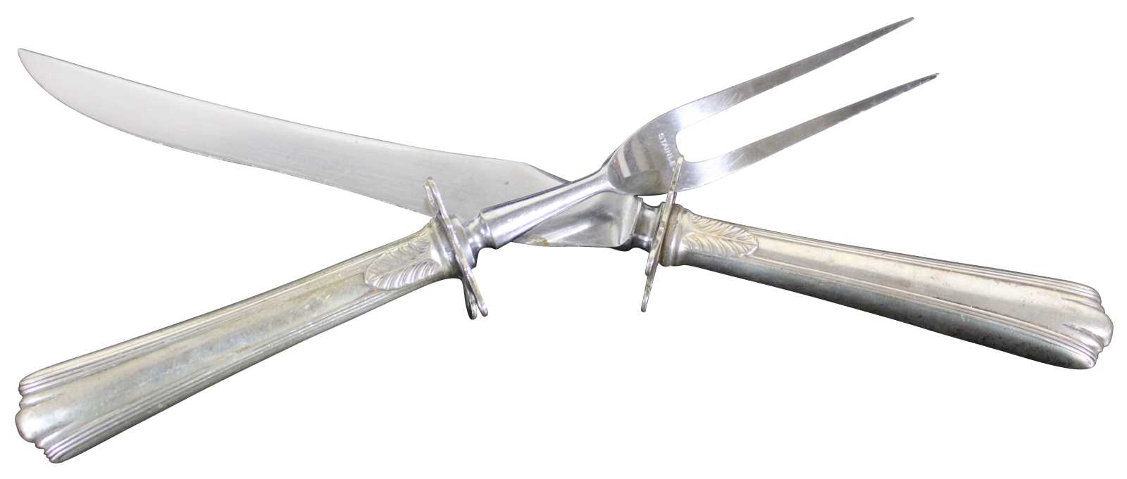 Carving Knife - 10” x 1.25” / 75.7 g / Carving Fork - 8.5” x 1.25” / 77.2 g / 8 Table Knives - 9” x 0.75” / 68 g / 6 Forks - 7.25” x 1” / 50 g / 7 Spoons - 6” x 1.125” / 28.6 g (Length x Width)