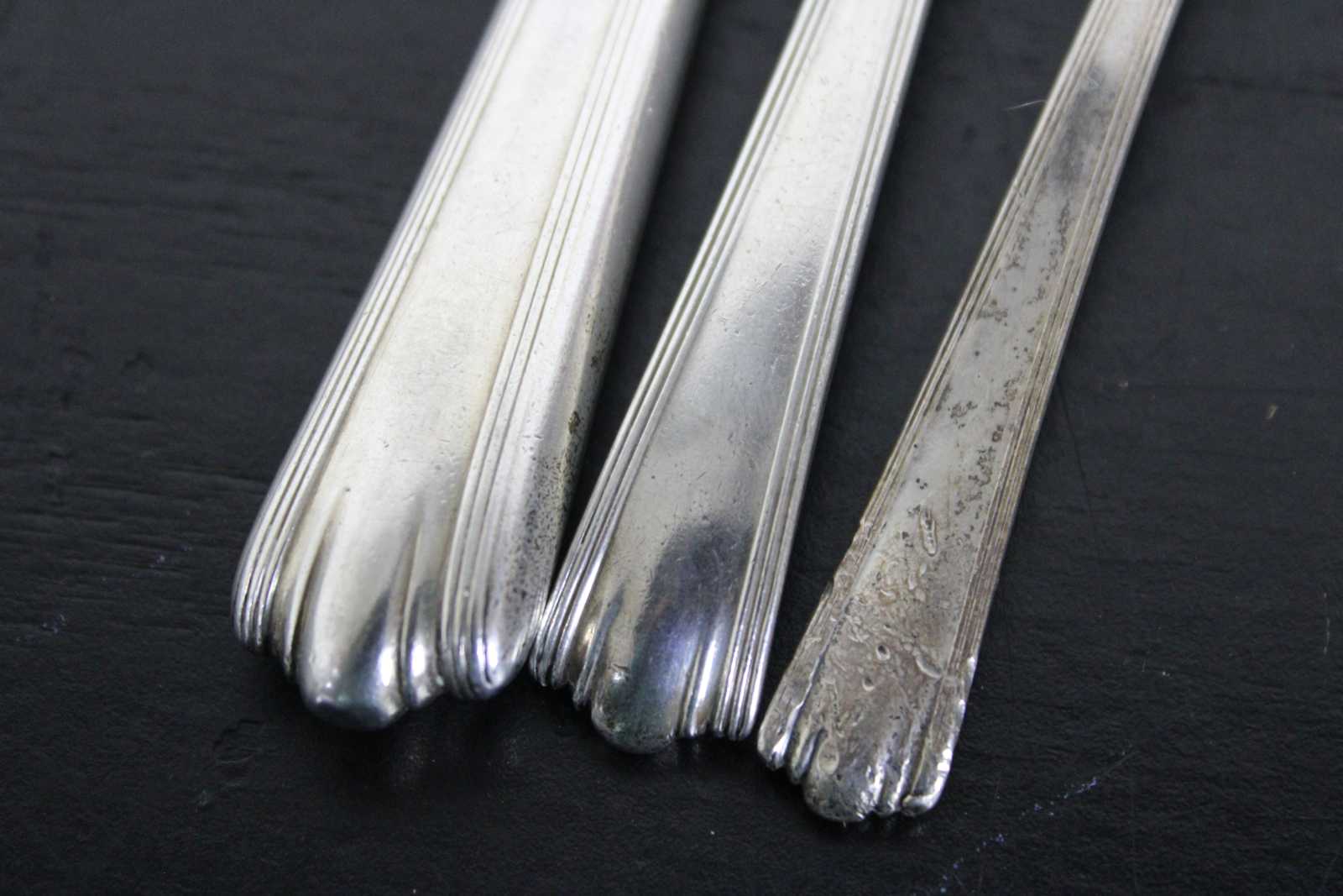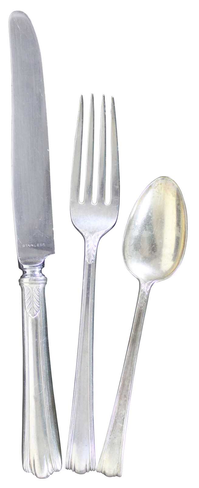 Antique 23 piece sterling silver flatware set by Lunt Silversmiths in the 1921 Treasure pattern. “Lunt Silversmiths began its activity and was incorporated in Greenfield, MA in 1902 as Rogers, Lunt & Bowlen Company.