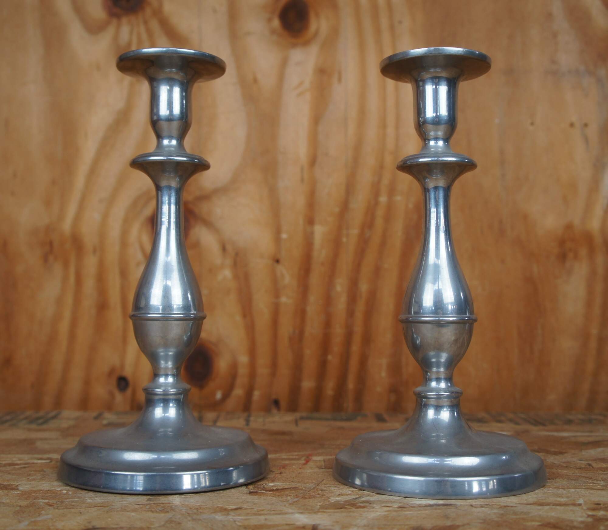 Pair Vintage RWP Royal Wilton Pewter Plough Tavern Candlesticks Satin Finish 9"
