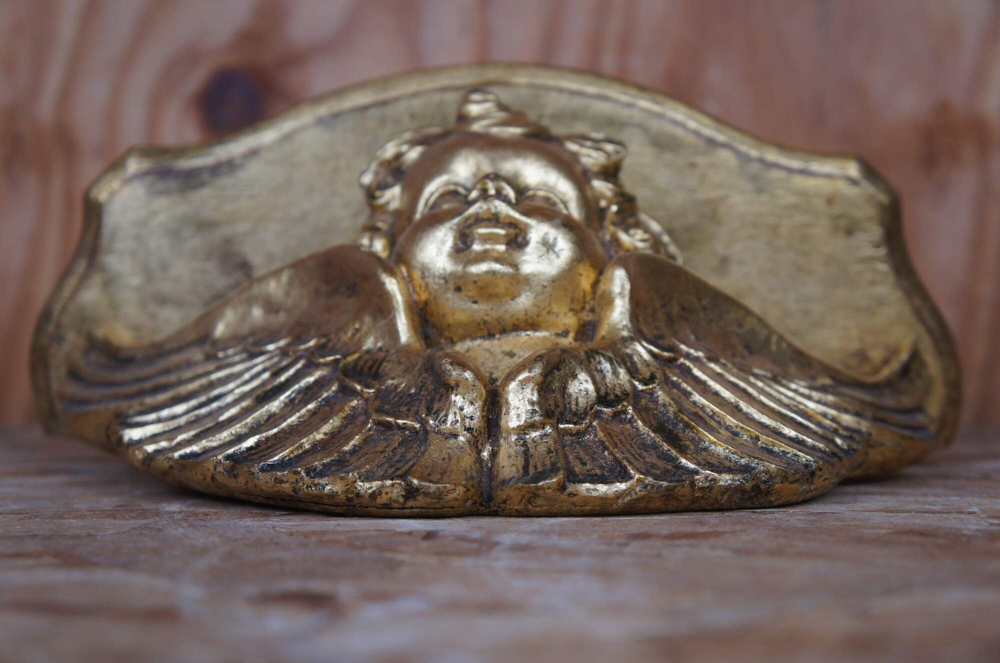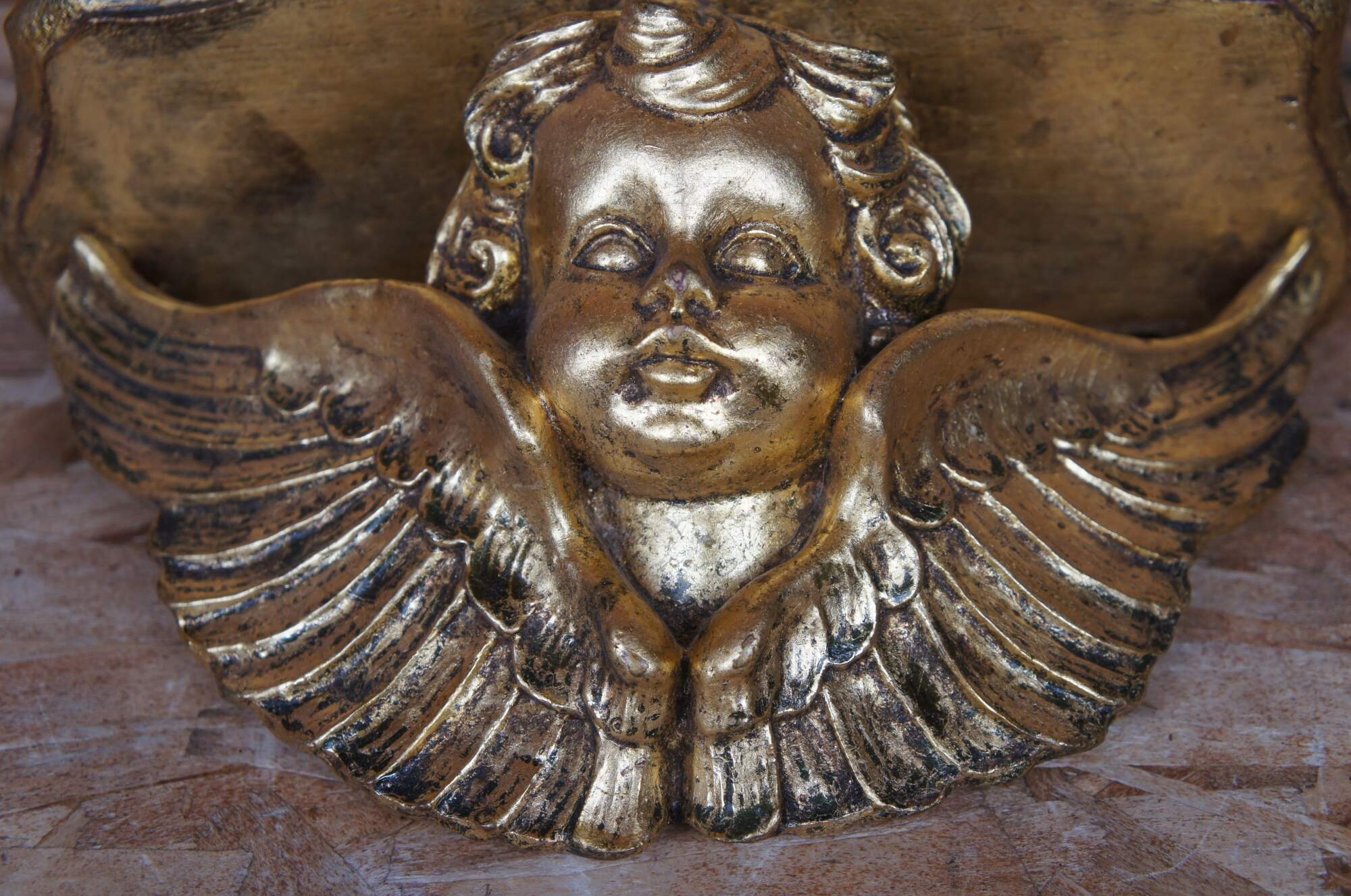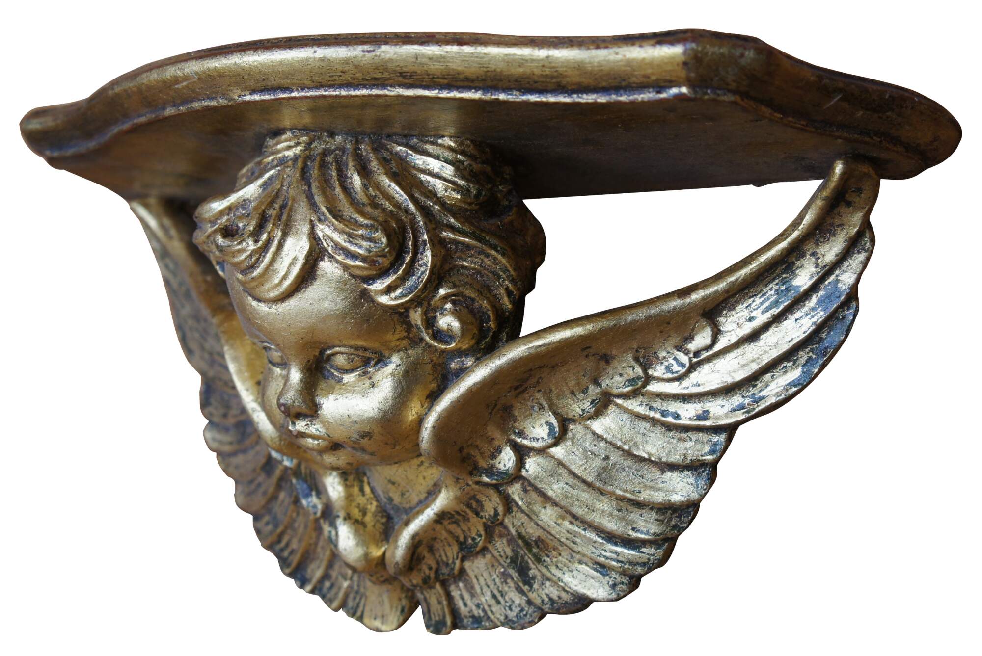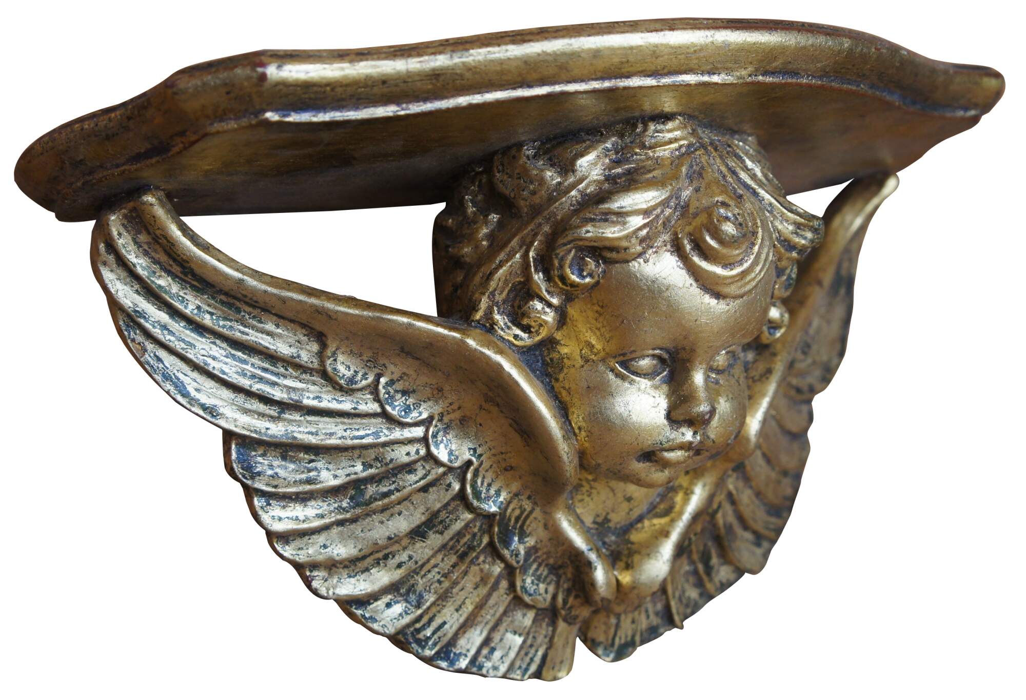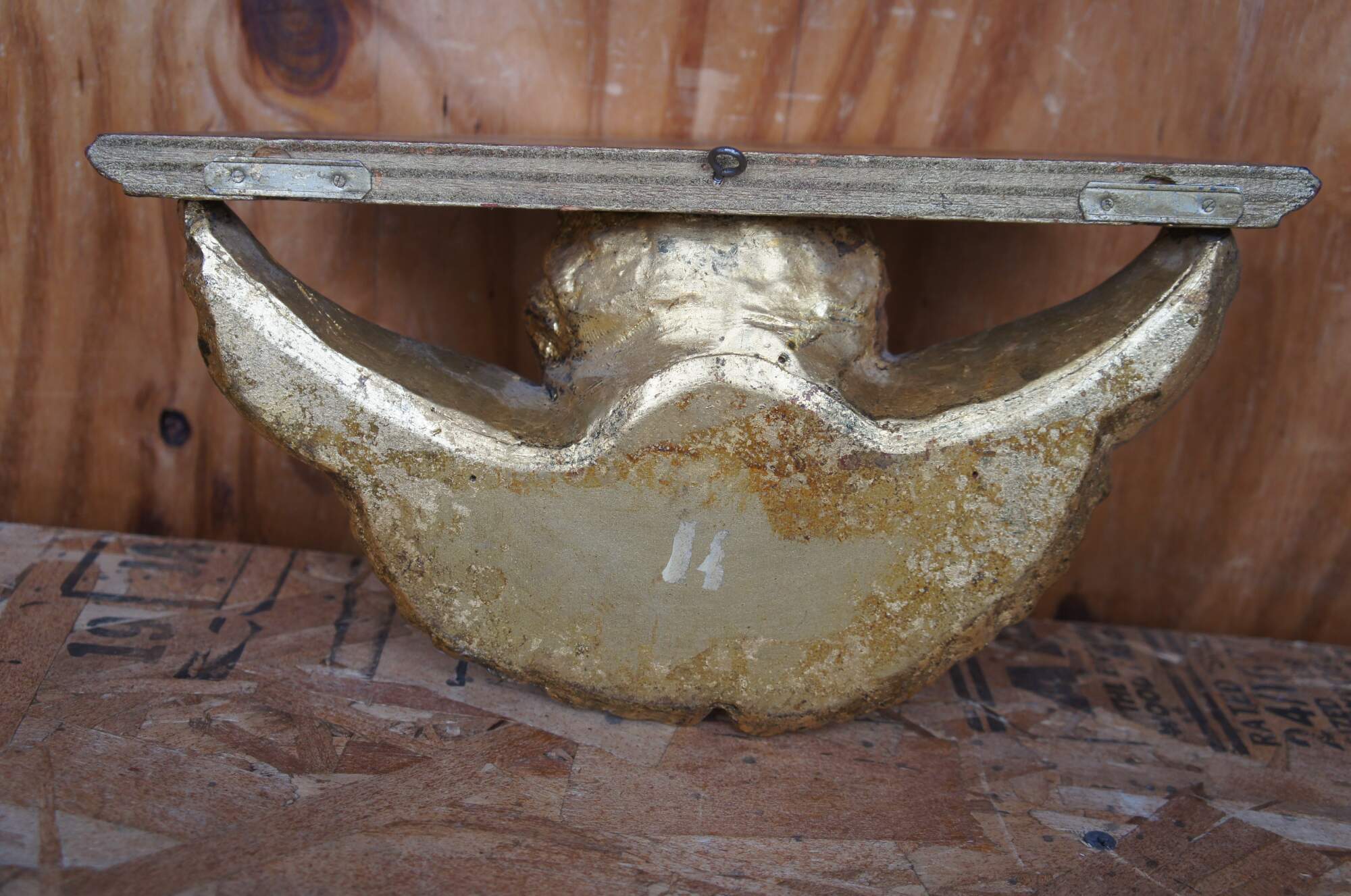 Vintage cherub or angel wall bracket hanging shelf done in gold.