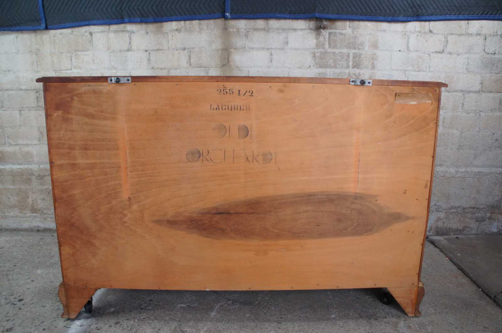 Vintage Kling Olde Orchard Colonial Chippendale mirror top vanity dresser or chest of drawers. Made of maple featuring eight drawers and brass hardware.