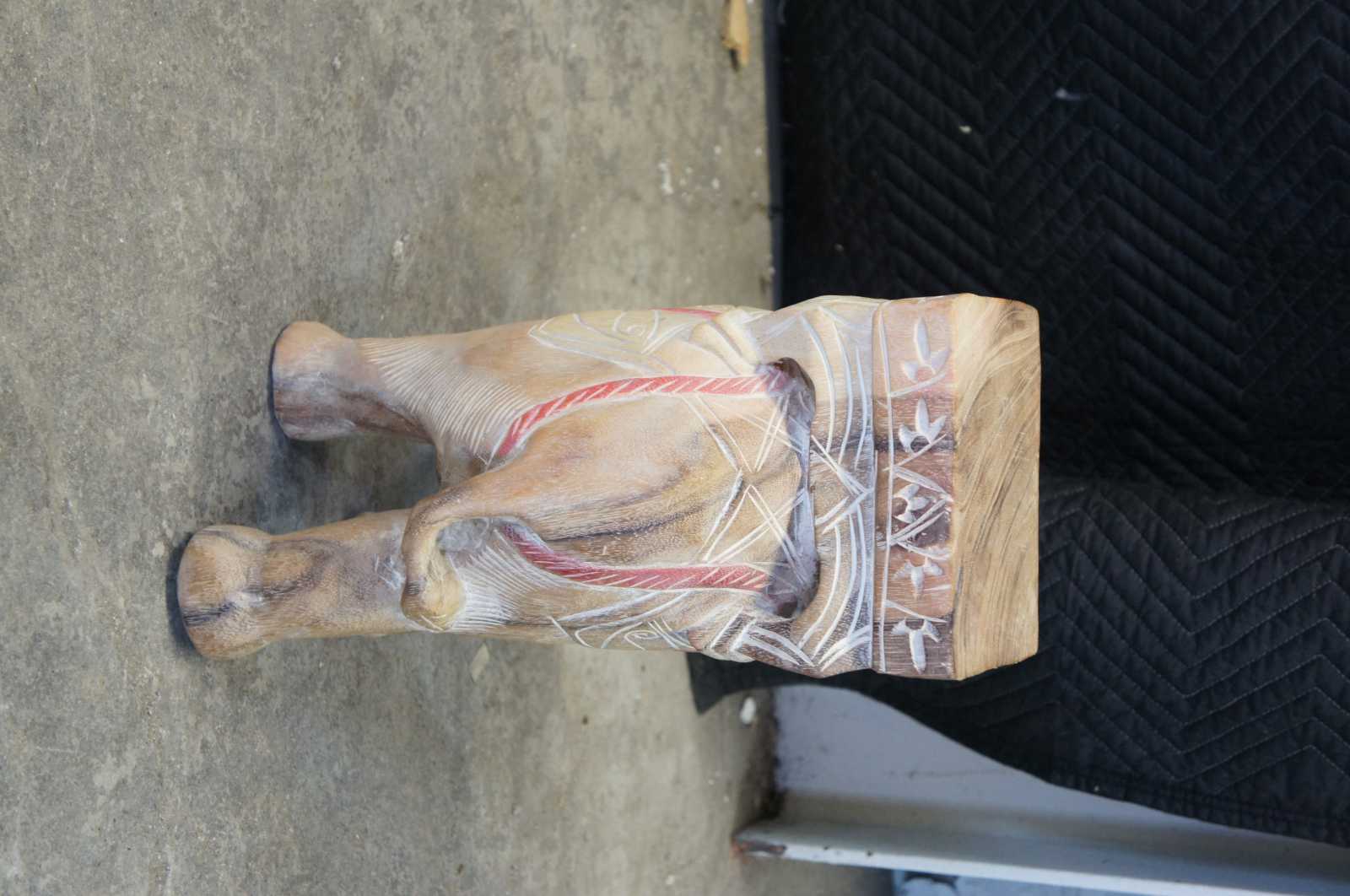 Vintage teak carved elephant garden stool, plant stand, side table or pedestal.