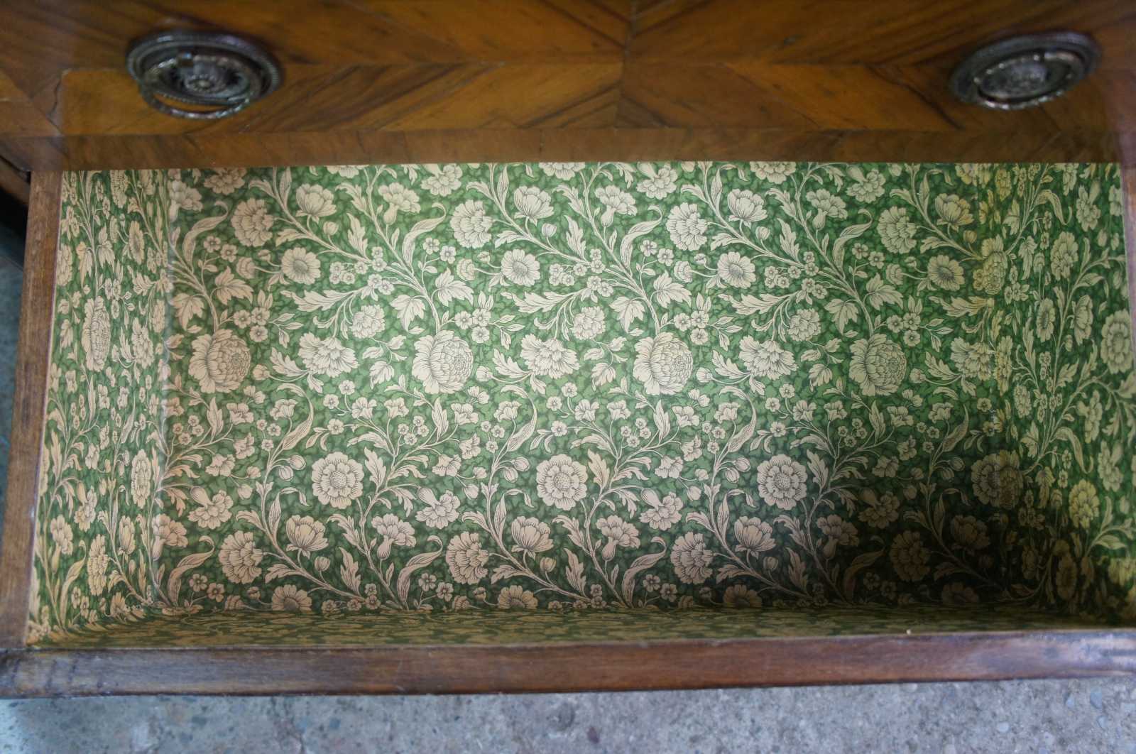 Good antique condition, wear and distressing commensurate with age and use, marking, splitting / cracking to veneer.