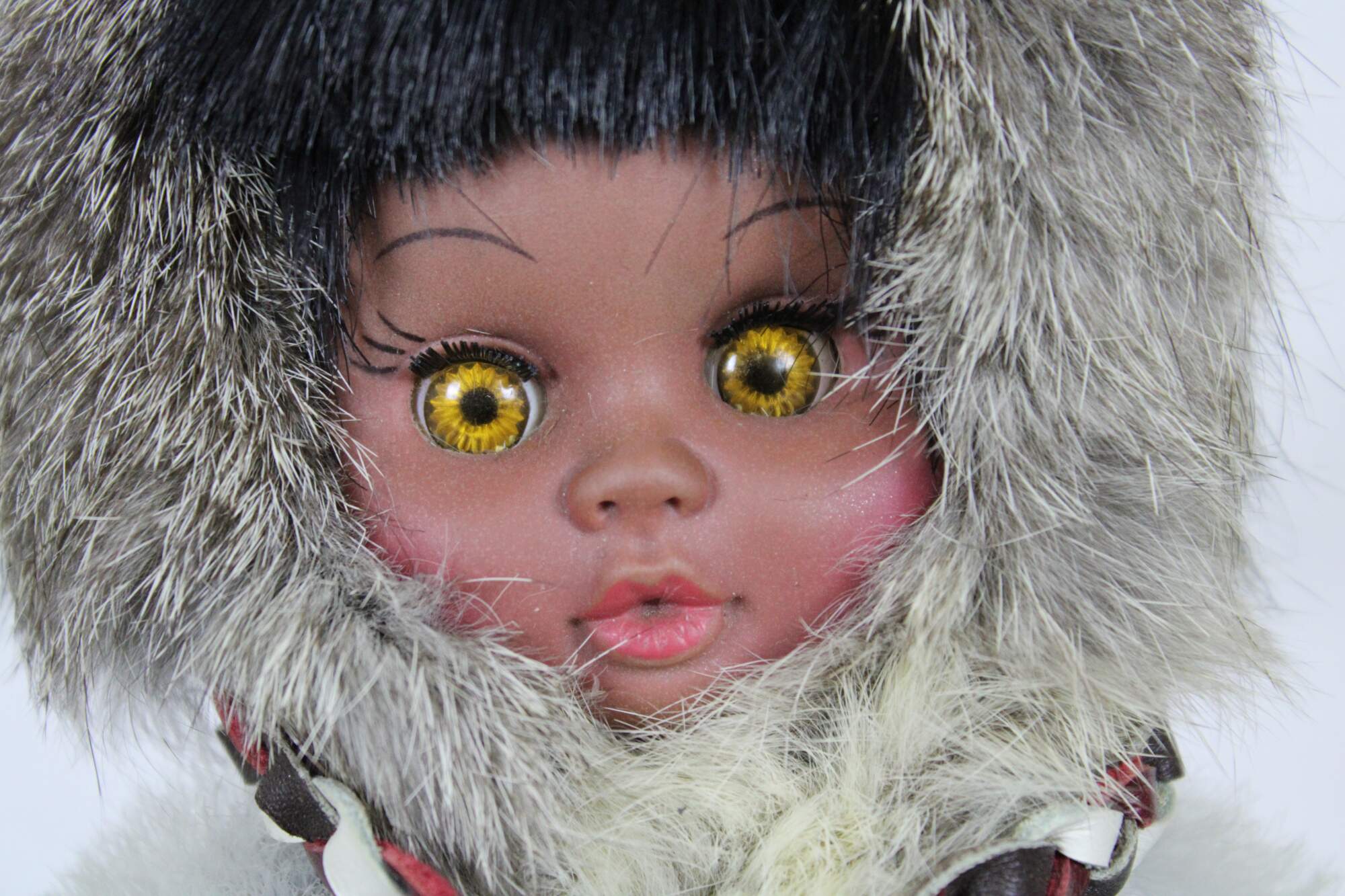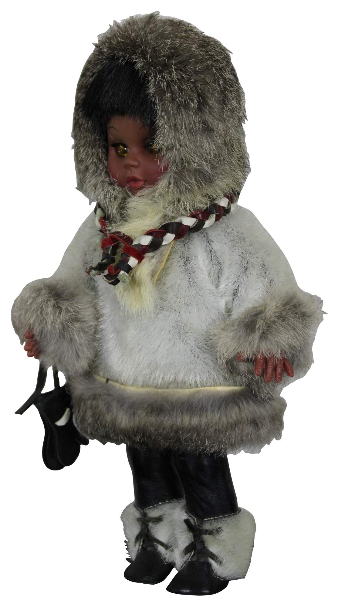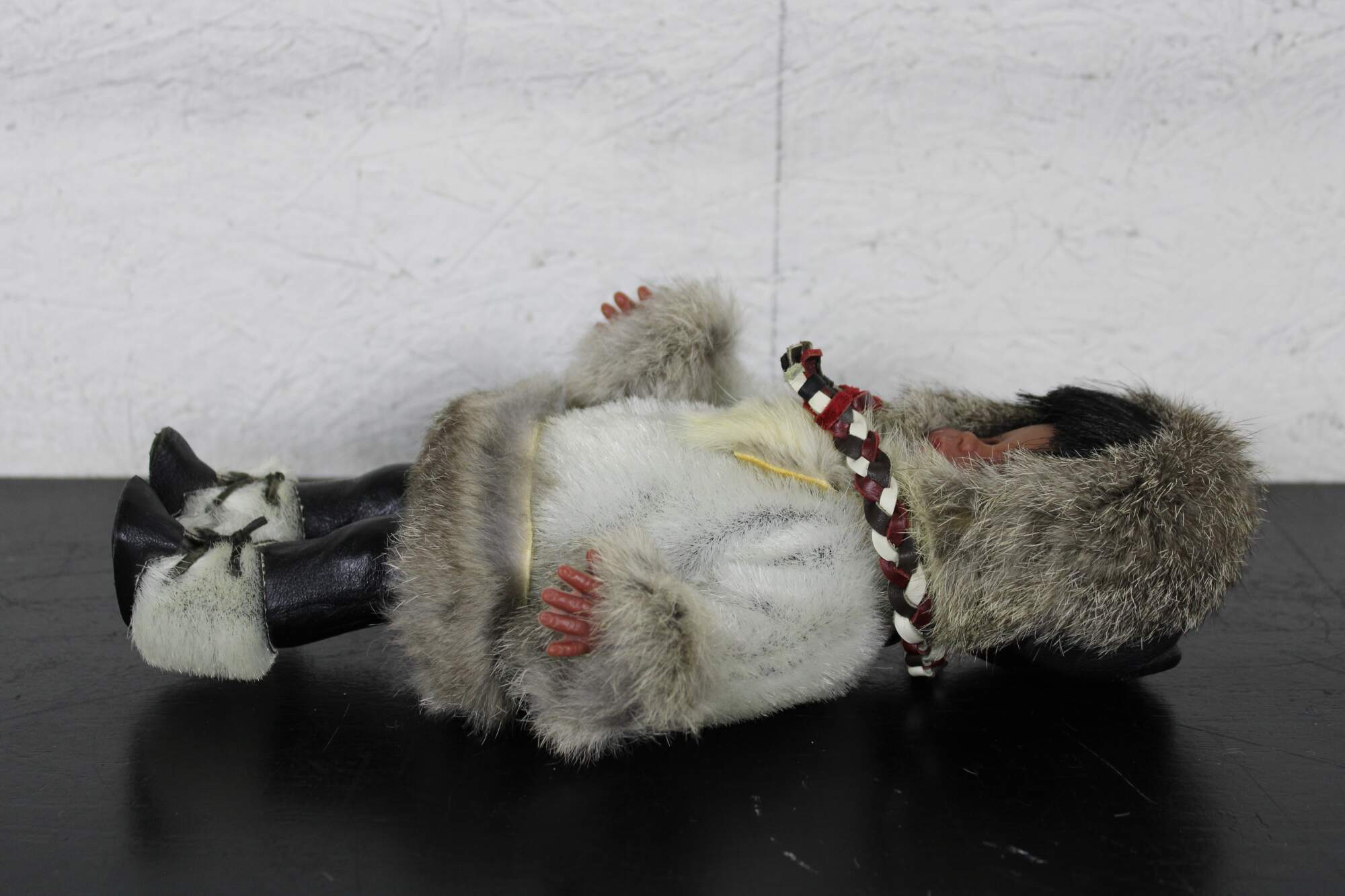 Vintage Inuit or “Eskimo” doll with sleep eyes, dressed in fur with leather boots.
