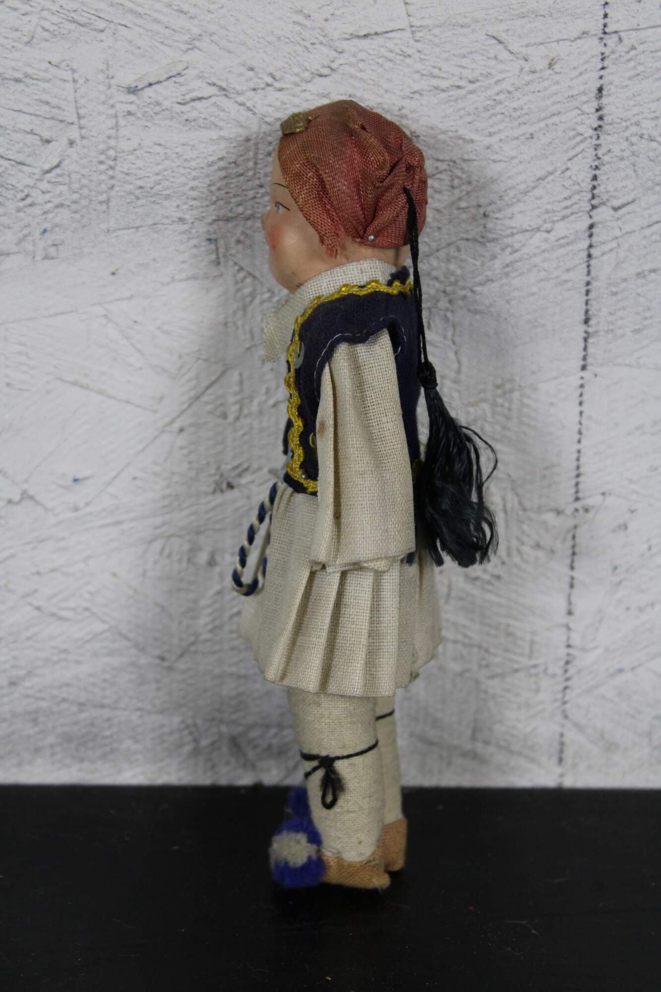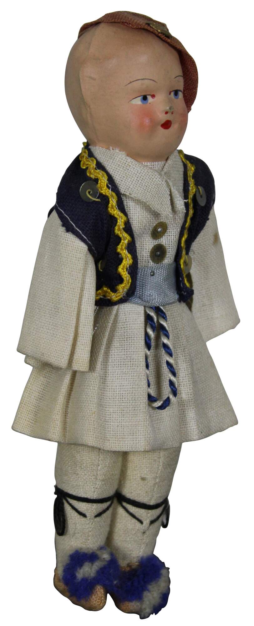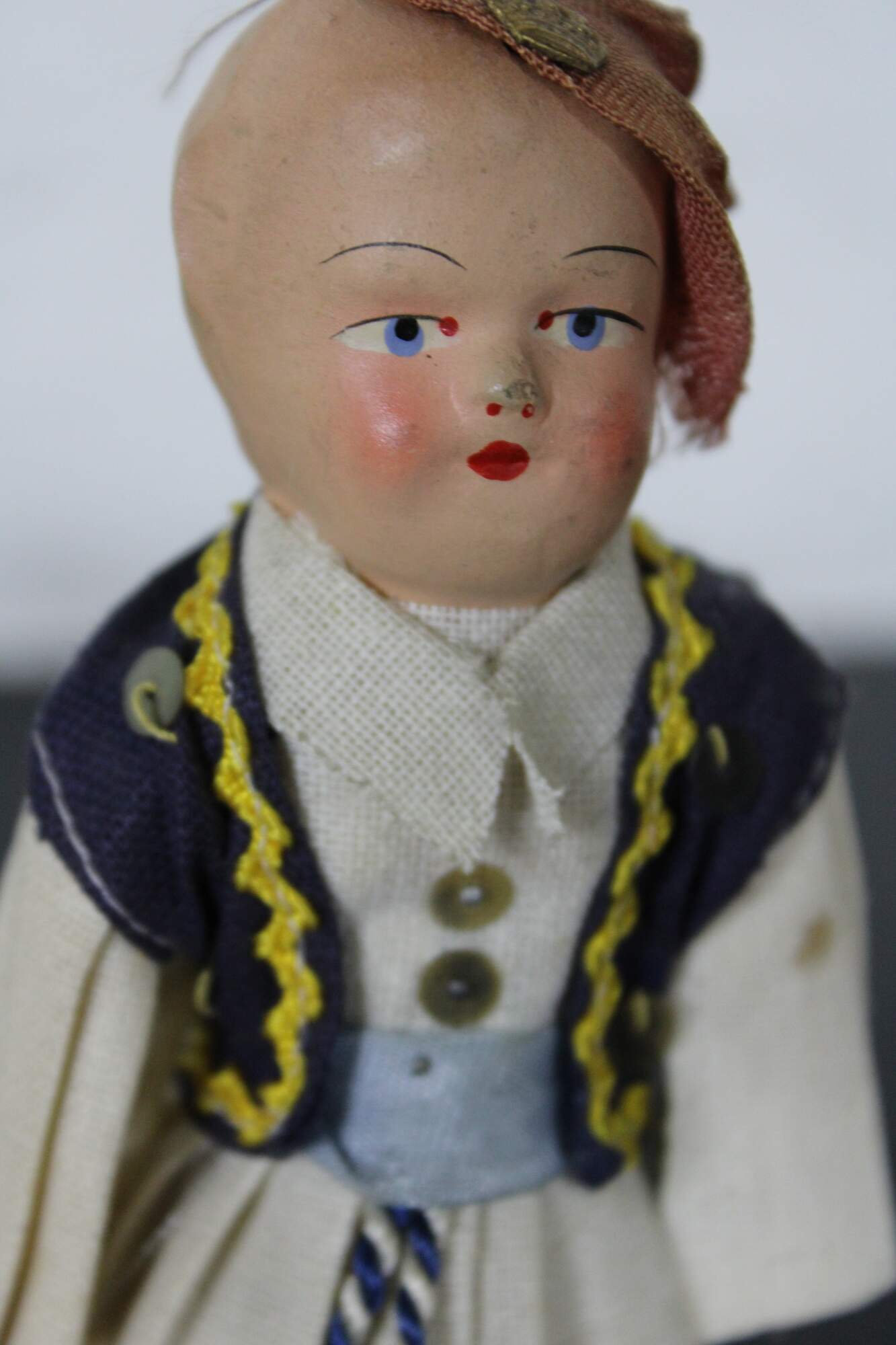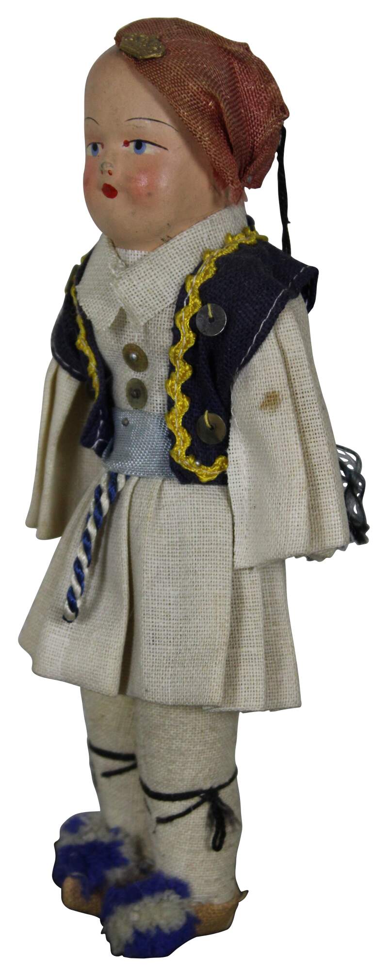 Antique composition head and cloth body Russian folk dress doll with hand painted features.