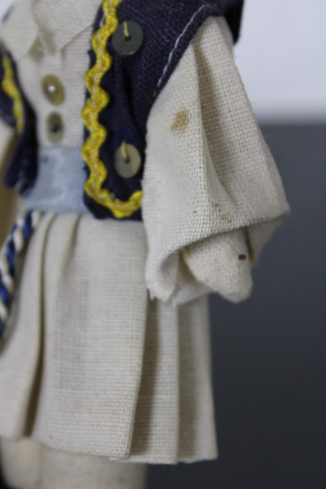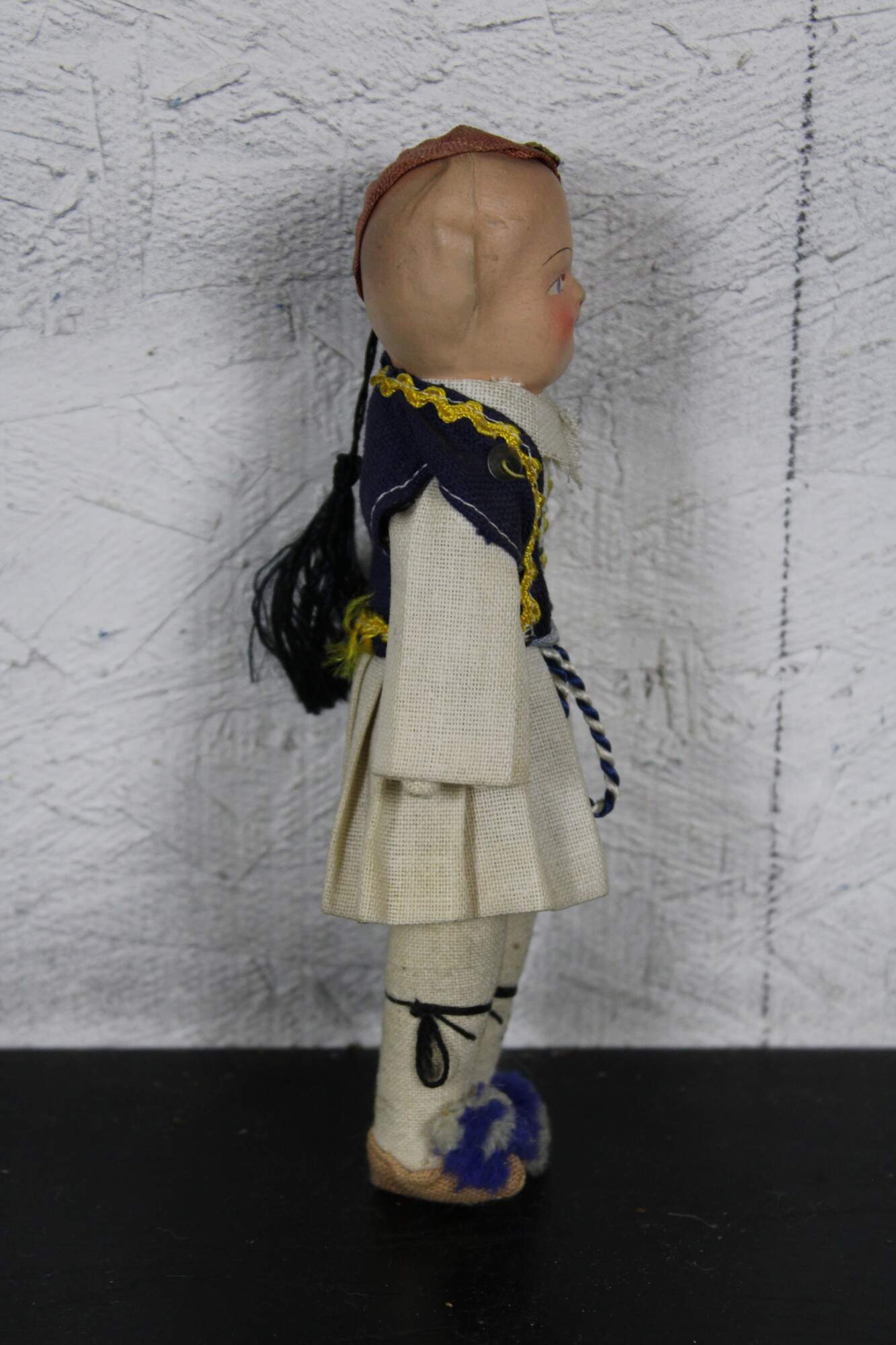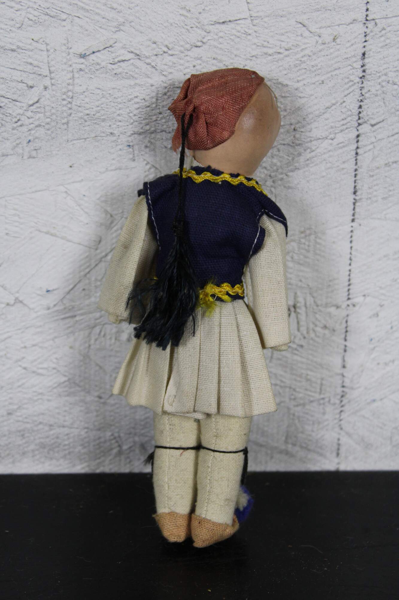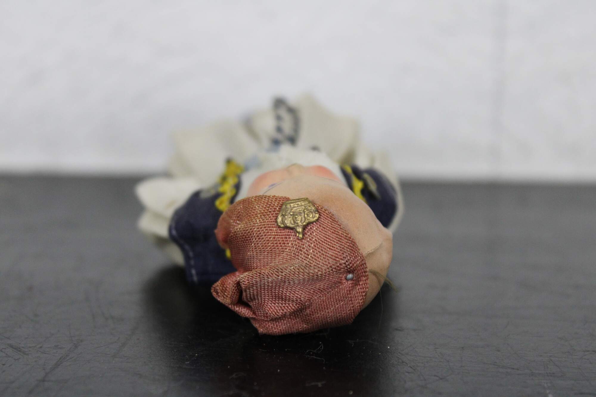 Antique composition head and cloth body Russian folk dress doll with hand painted features.