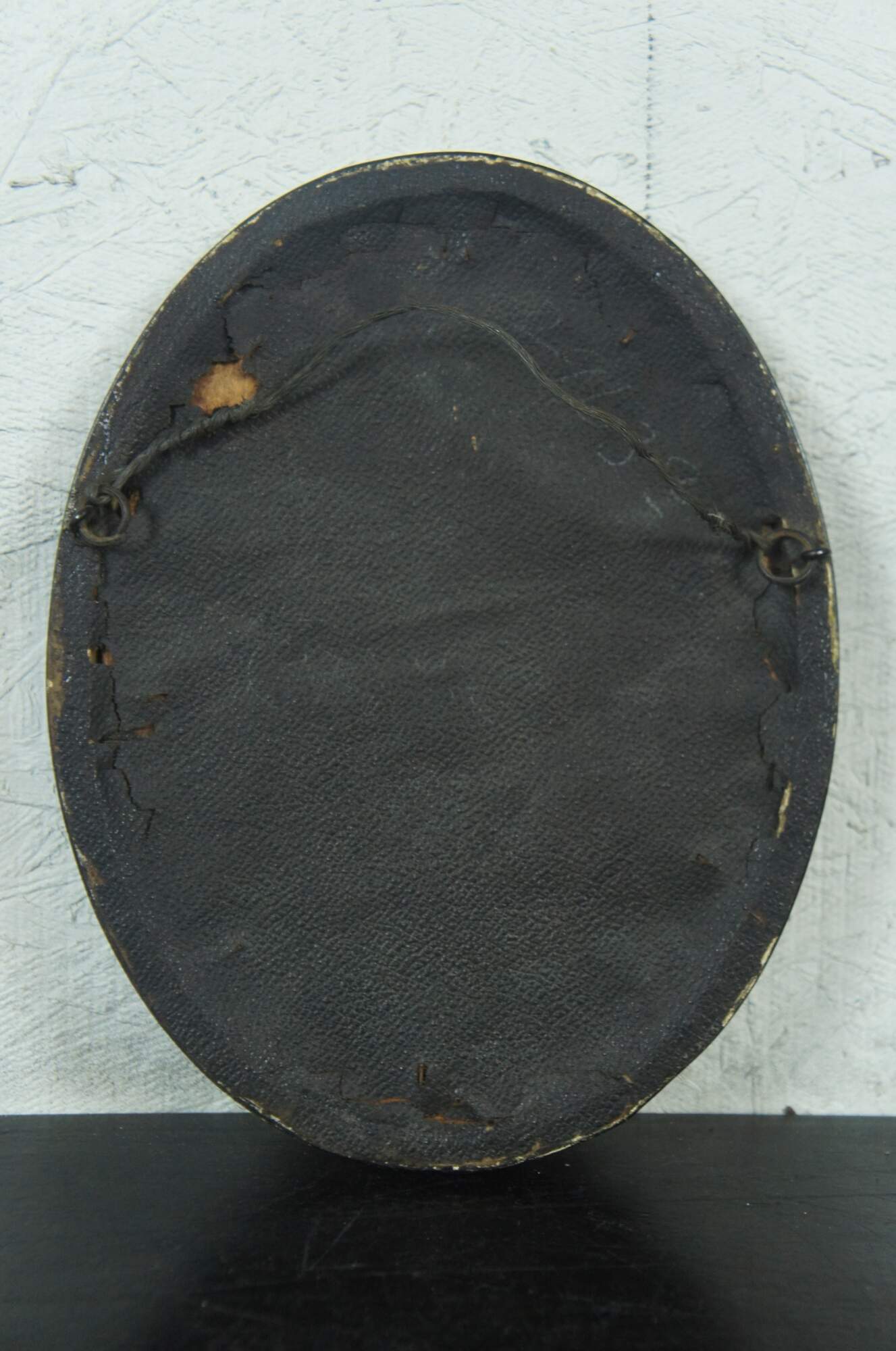 Antique French silk embroidered stumpwork picture of a pastoral woman in a seemingly fine dress and hat, carrying a basket and a rake.