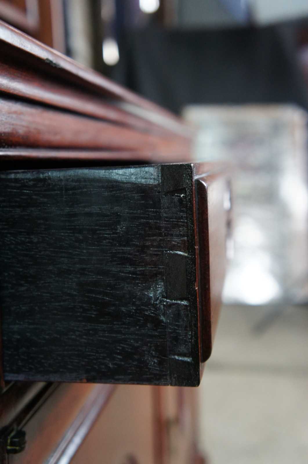 Good antique condition, wear and distressing commensurate with age and use, sun fading, missing one hardware pull.