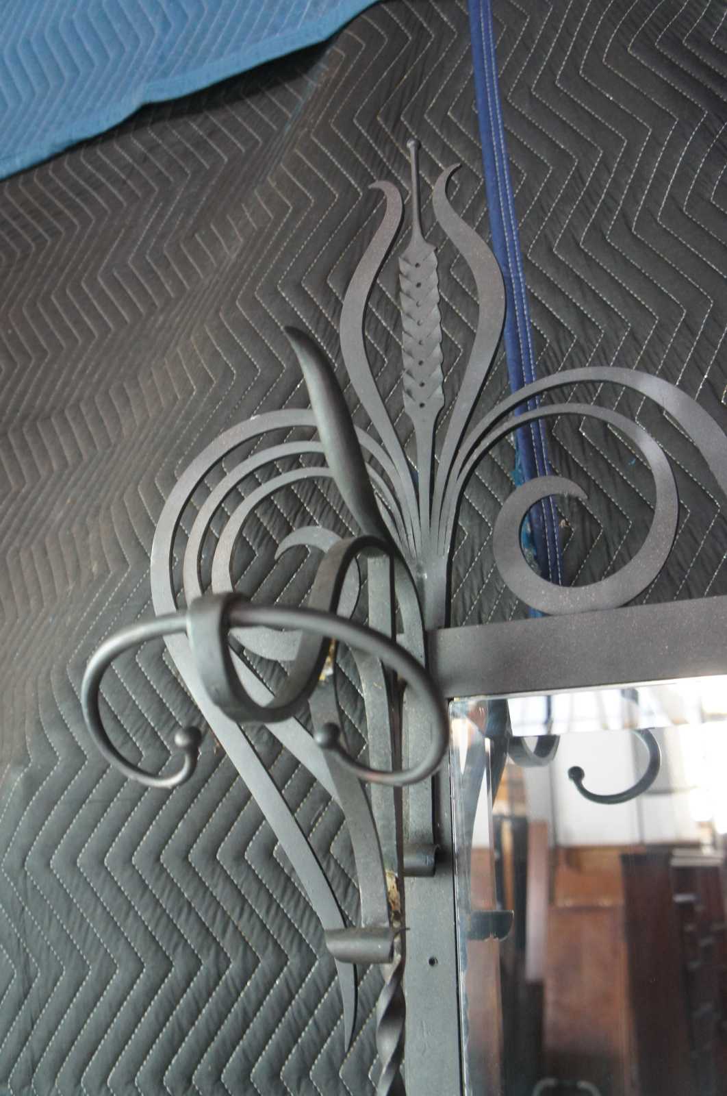 Good overall condition, wear and distressing commensurate with age and use, very heavy, rust / pitting / edge wear to iron, missing upper left hat hook.