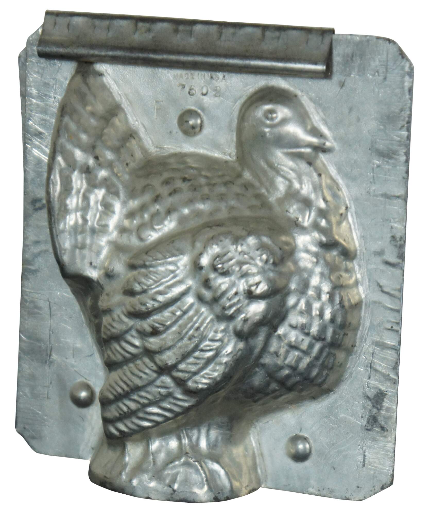 Antique circa 1930’s Eppelsheimer two part tin baking or chocolate mold in the shape of a standing Thanksgiving turkey; includes one original clip.