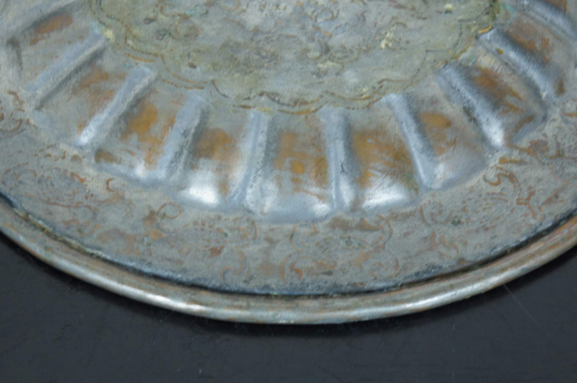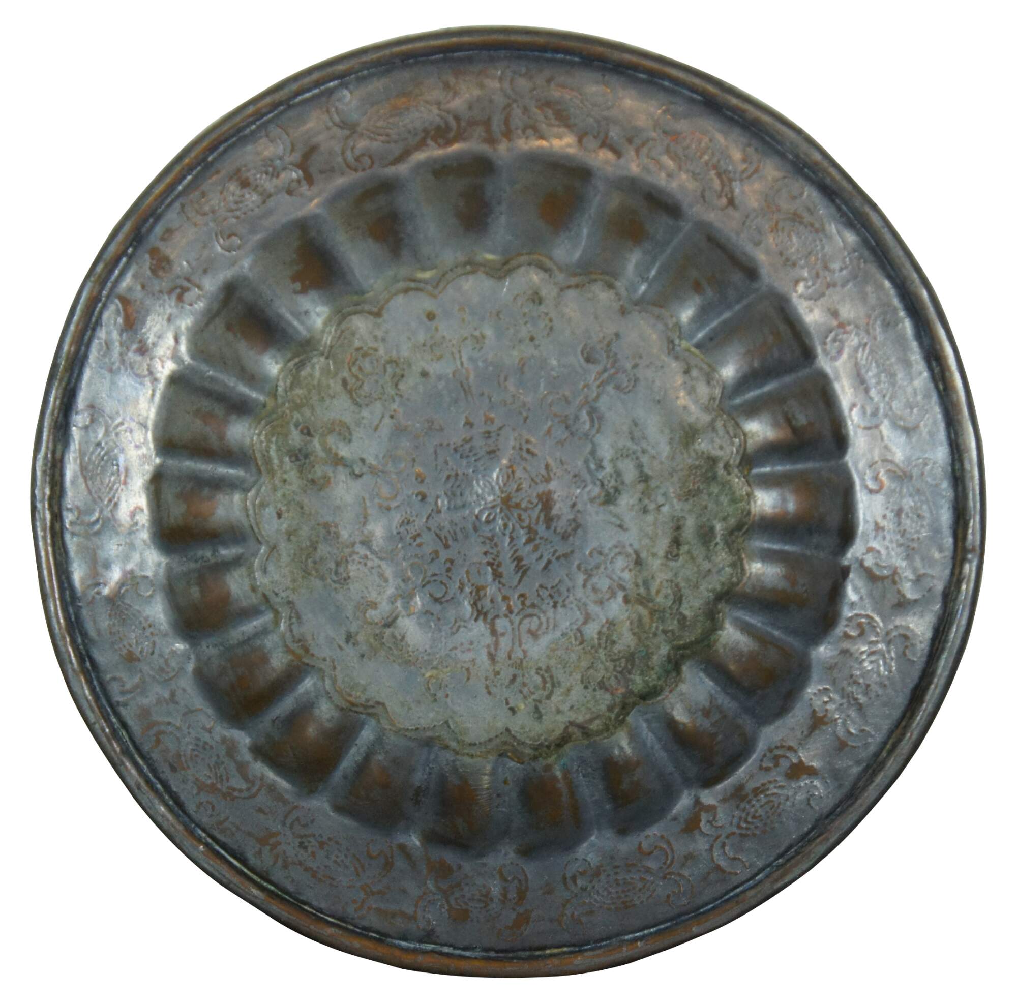 Vintage Middle Eastern etched copper decorative plate.