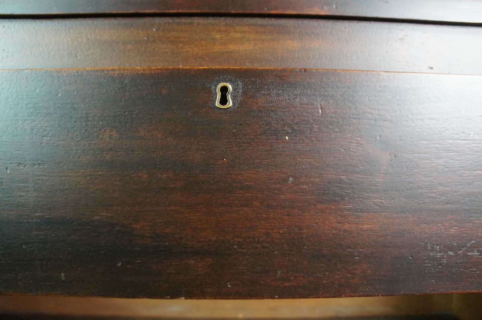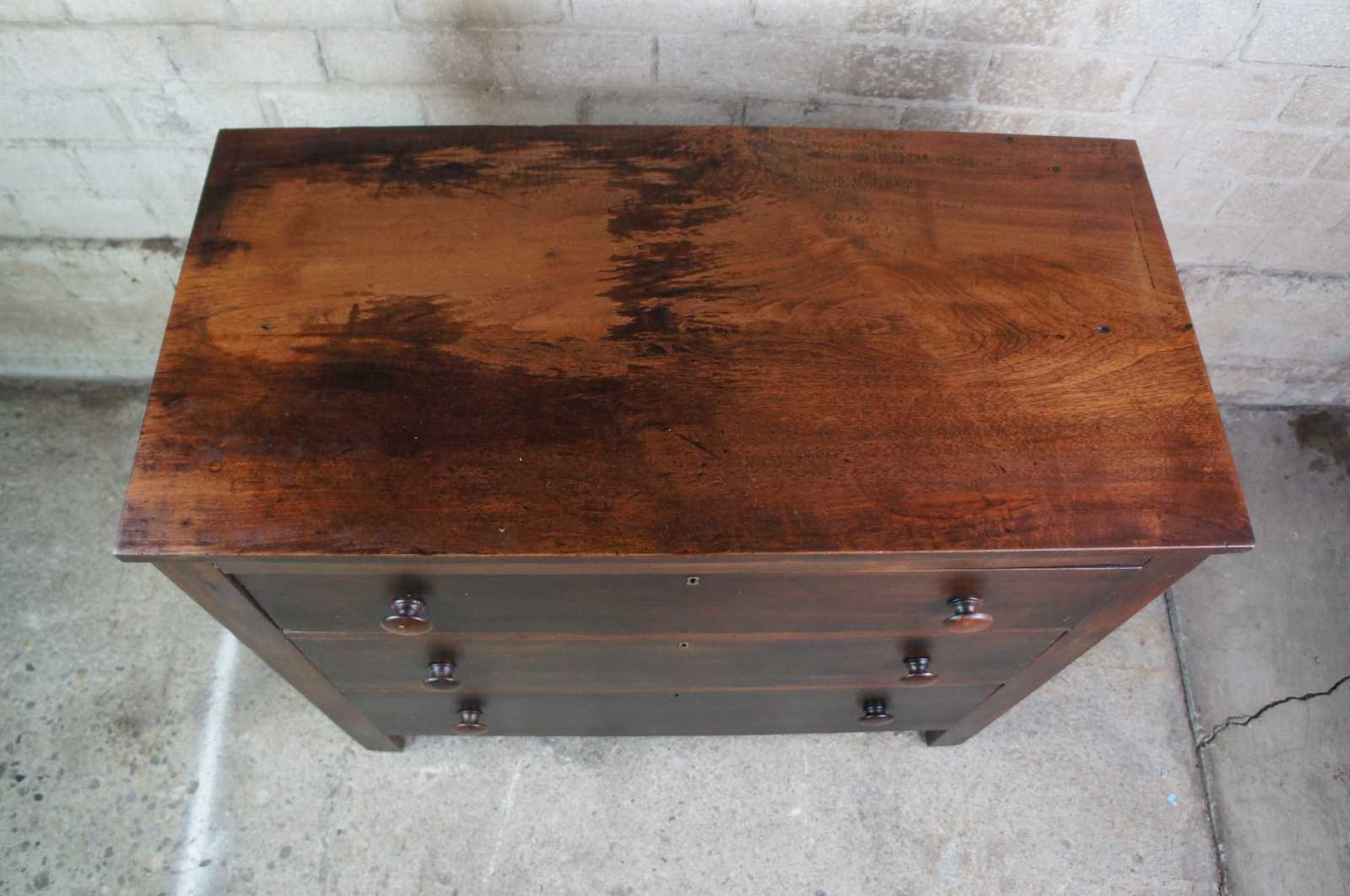 Antique 19th century chest of drawers or dresser. Made of walnut featuring three large hand dovetailed drawers with turned knobs and brass keyholes.