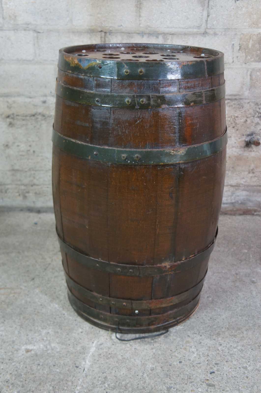 An antique whisky barrel that was converted into a speaker in the 1960s. Beautifully designed with metal banding and port holes for sound.