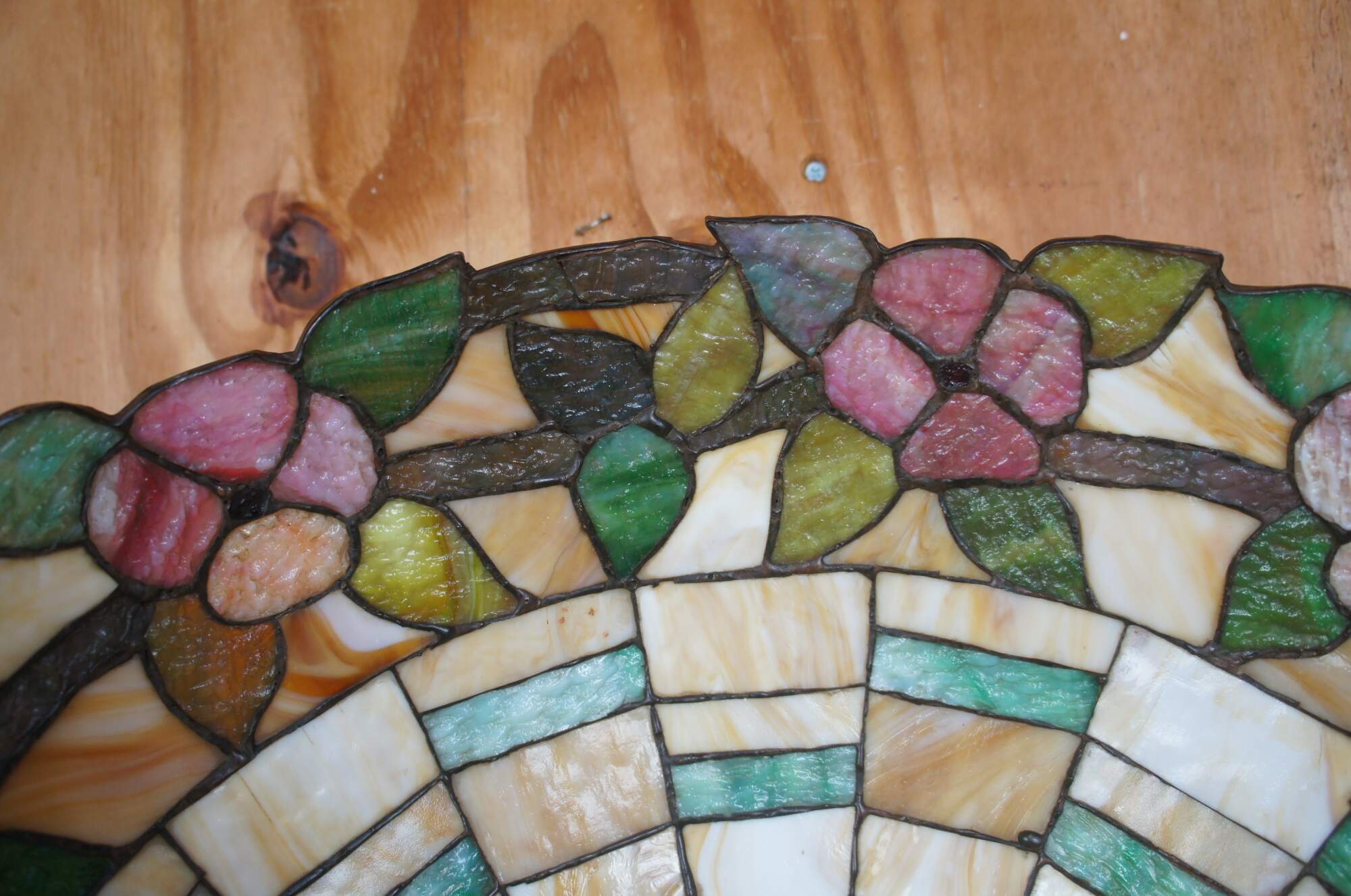 This hanging pendant Tiffany style stained glass lamp features florals in multicolors.