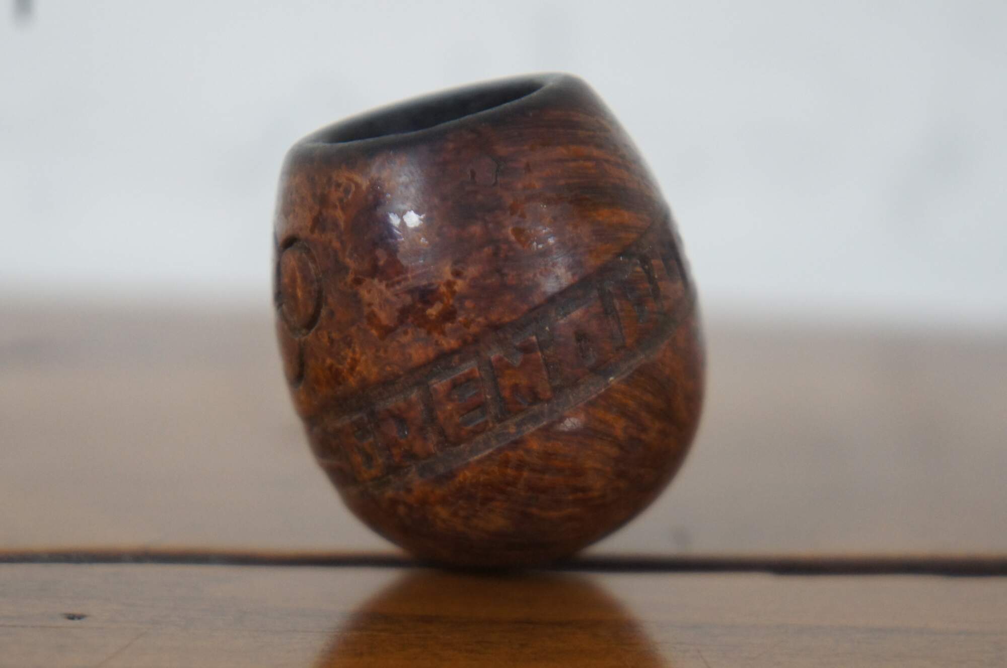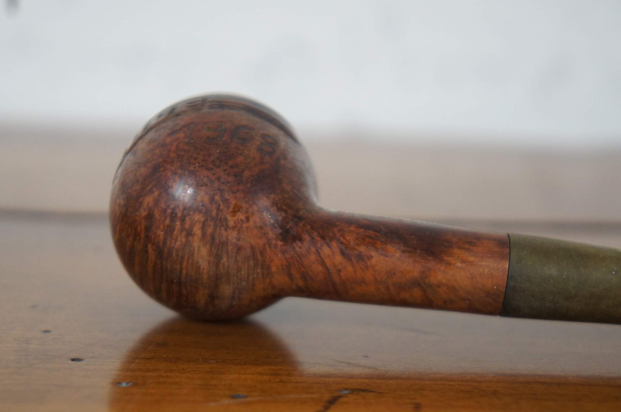 Vintage mid century briar pipe carved to commemorate the 1968 winter Olympic games in Grenoble, France; marked Bruyere Fine Armorial.