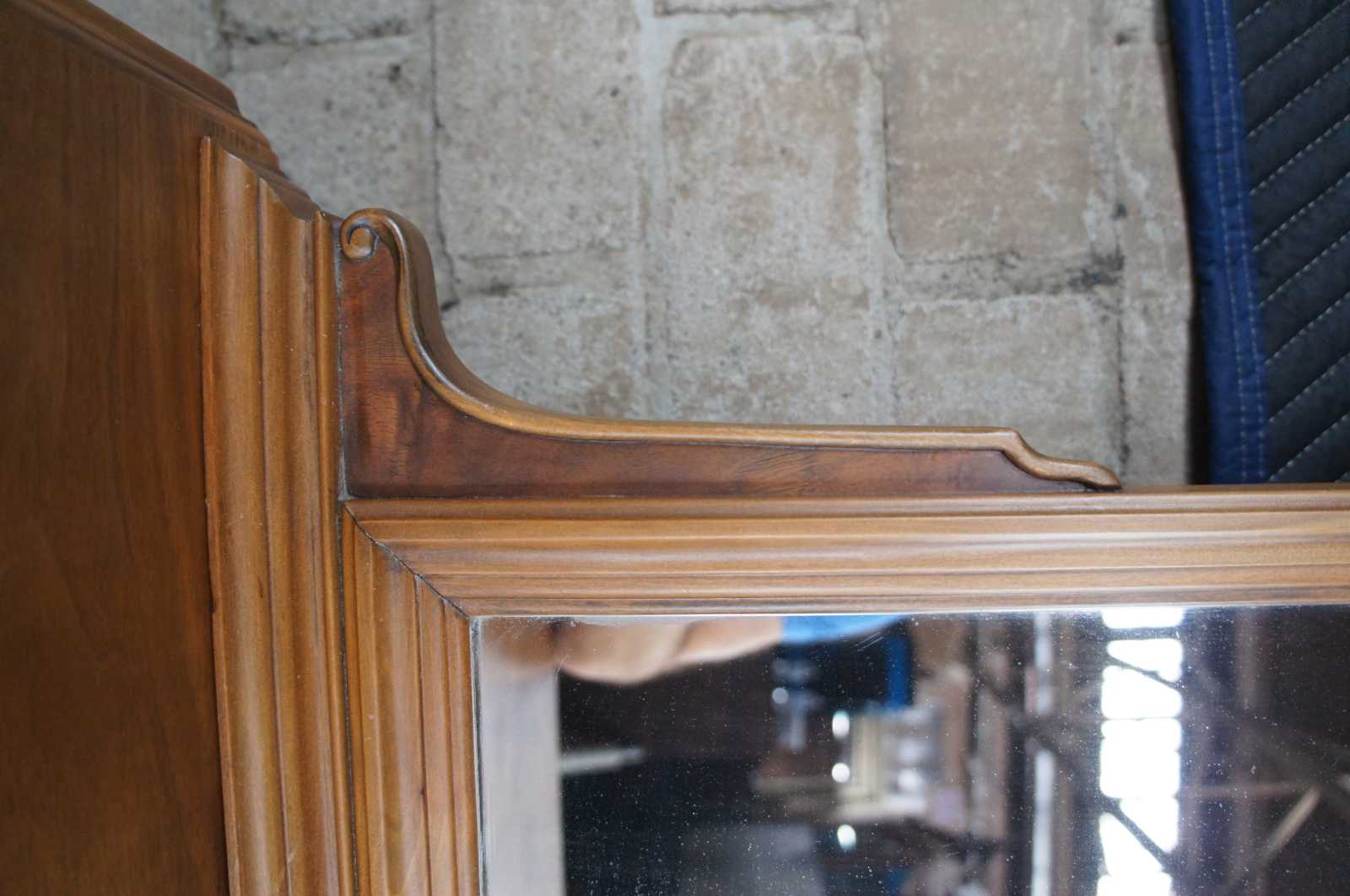 Antique Art Deco vanity dresser featuring a domed / arched mirror, five drawers and carved legs.
