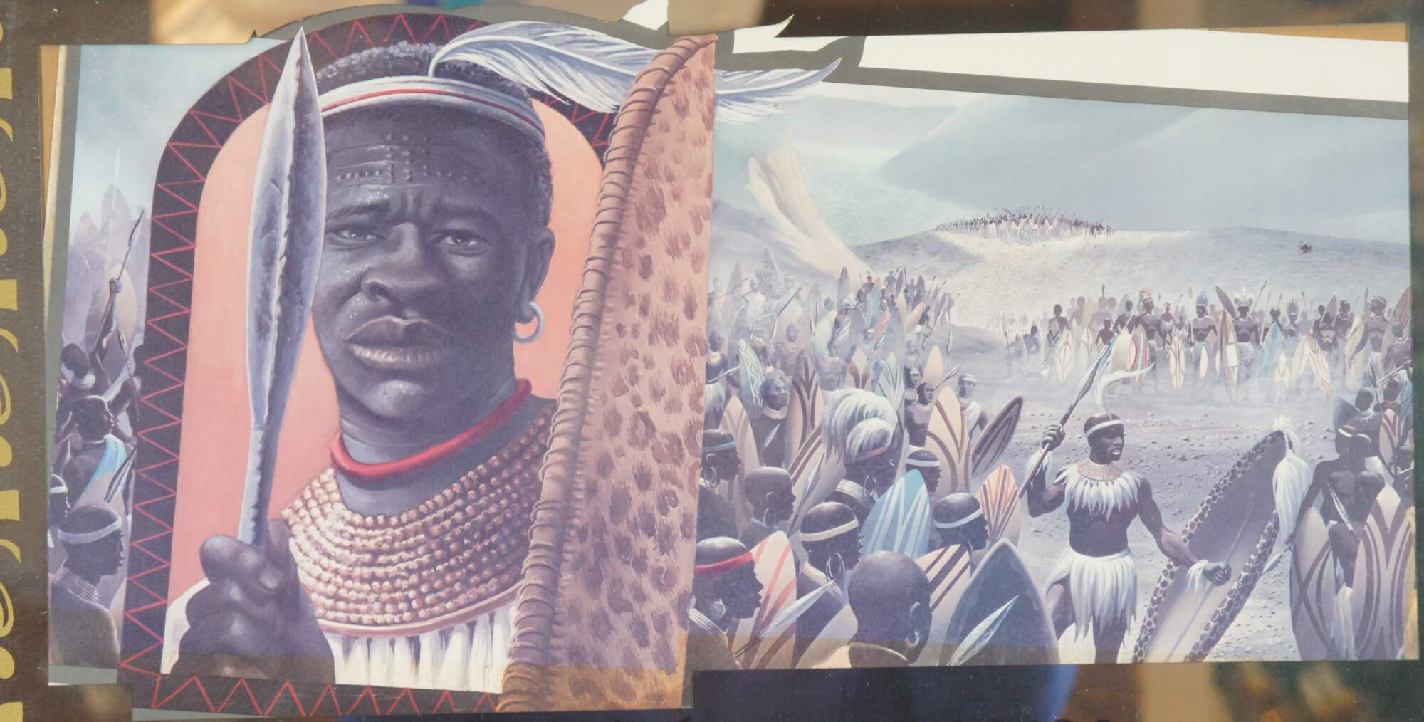 Framed ‘Great Kings of Africa’ mirror advertisement made by Budweiser featuring Shaka, King of the Zulus.
