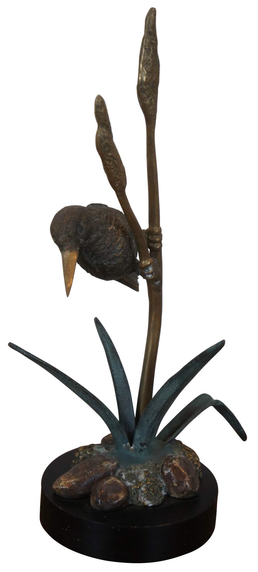Vintge Andrea by Sadek brass sculpture featuring a perching bird on a reed. Attributed to a American Woodcock bird, 15367.