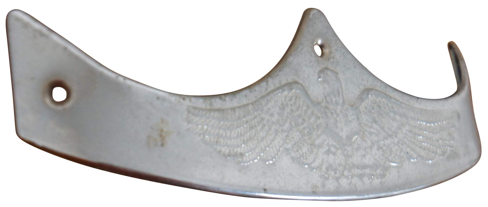 Vintage Harley-Davidson Panhead motorcycle chrome fender tip emblazoned with the shape of a bald eagle in flight, for 1934-1984 rear fenders and 1934-1948 front fenders. Originally purchased in the 1980s from the Pennsylvania warehouse where a cache of old Harley parts were discovered.