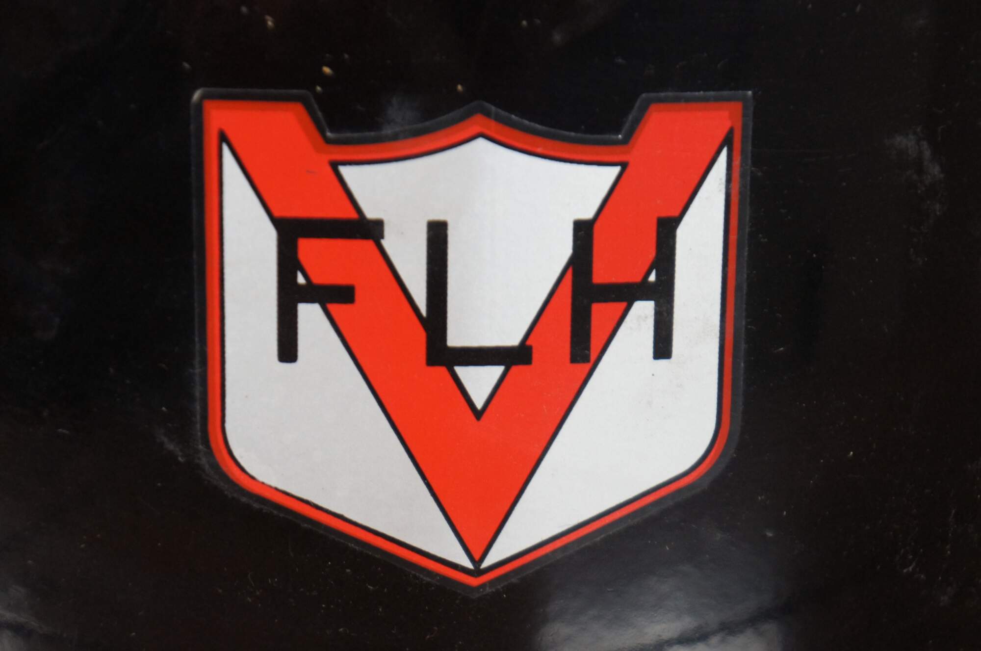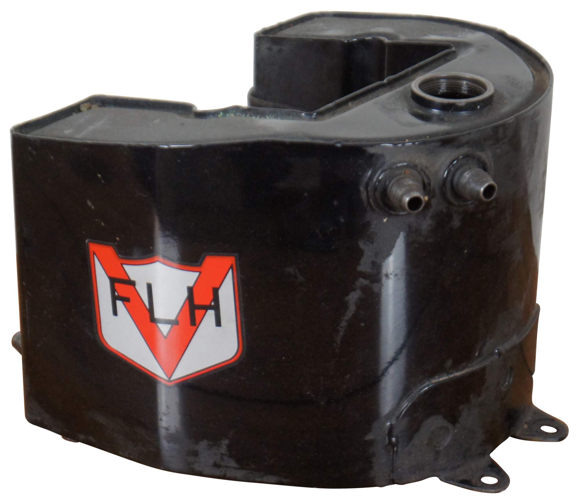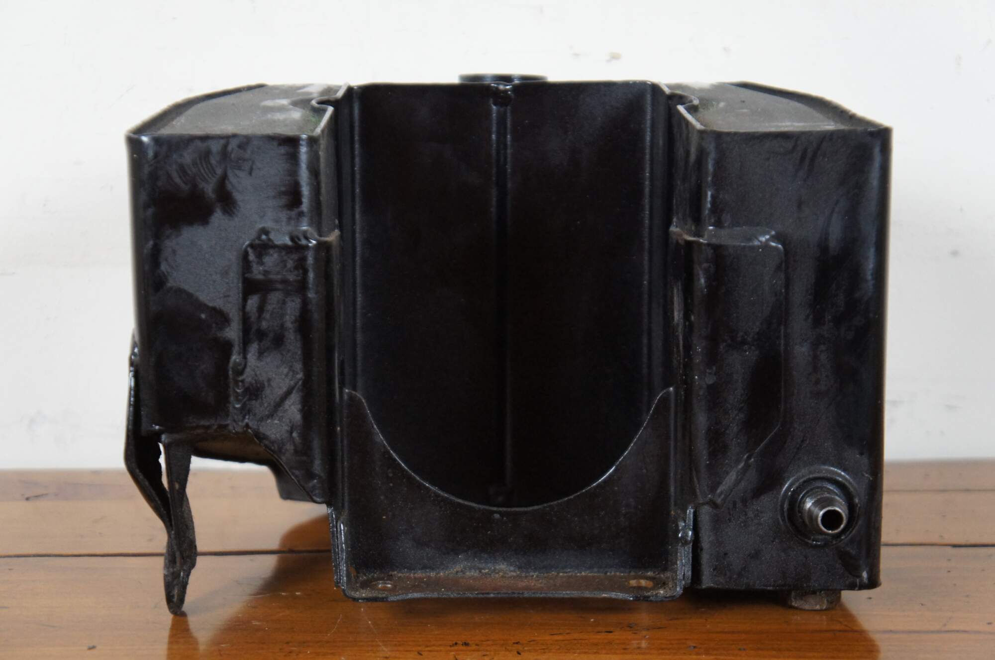 1950s Original Vintage Harley-Davidson Big Twin oil tank for Panhead motorcycles from 1936-1957, finished in black, with chrome plated return oil line. Originally purchased in the 1980s from the Pennsylvania warehouse where a cache of old Harley parts were discovered.