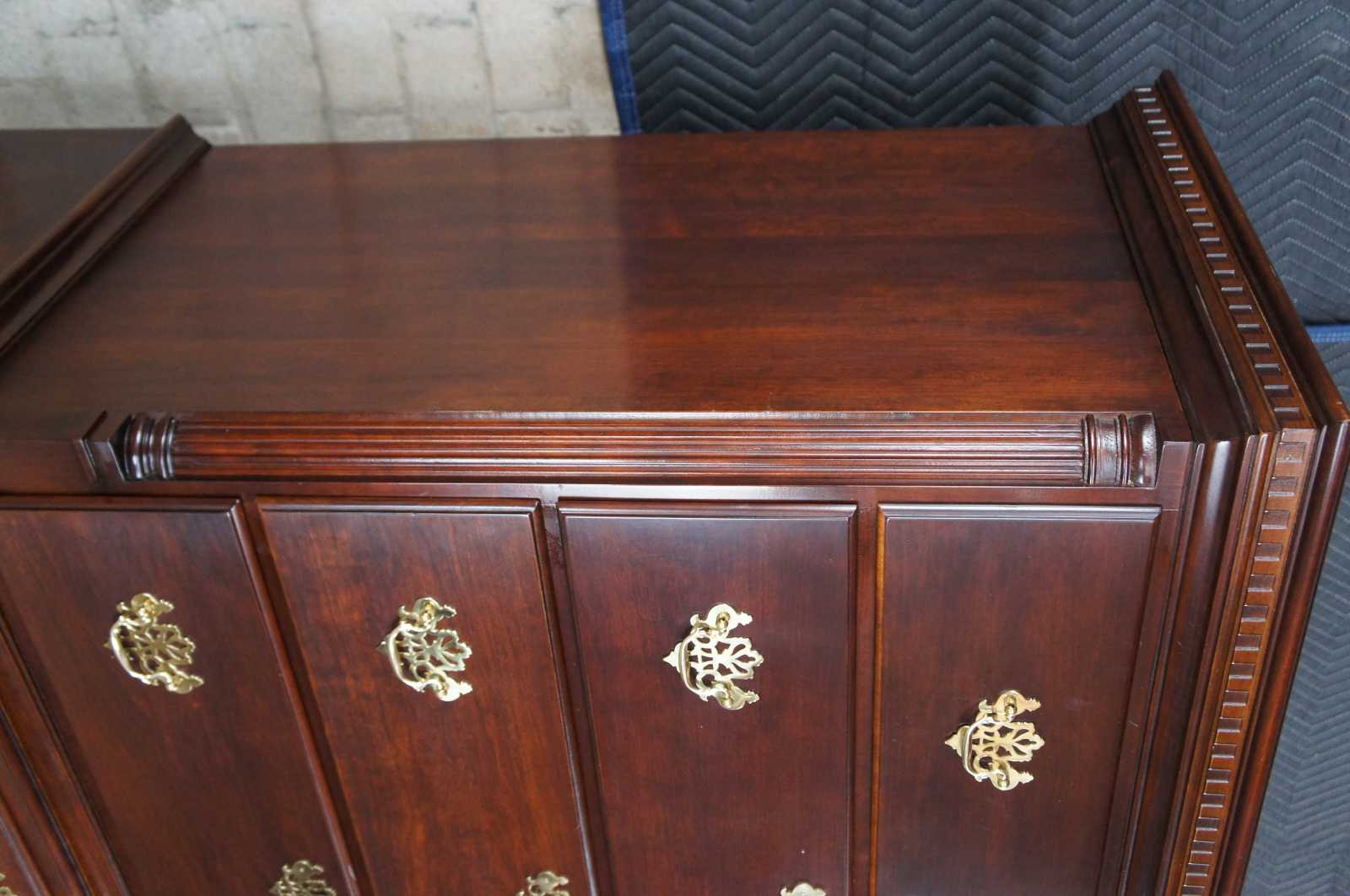 Vintage Statton Trutype Americana Old Towne highboy / tallboy chest or dresser, circa last quarter 20th century. Made of solid cherry featuring a chest or chest style with seven drawers, quarter cut fluted columns, dentil molding, brass hardware, and bracket feet.