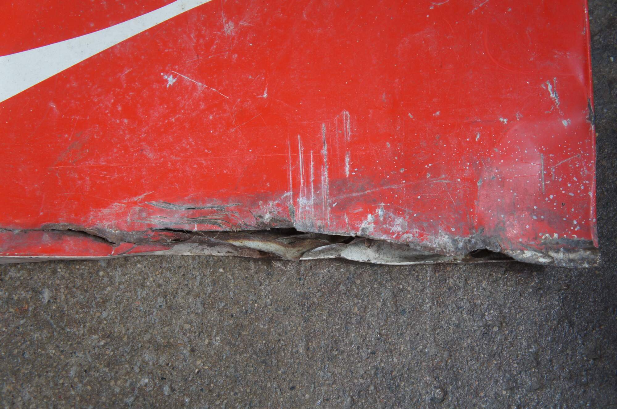 Large vintage Coca-Cola pressed steel sign, painted red and white in the iconic design.