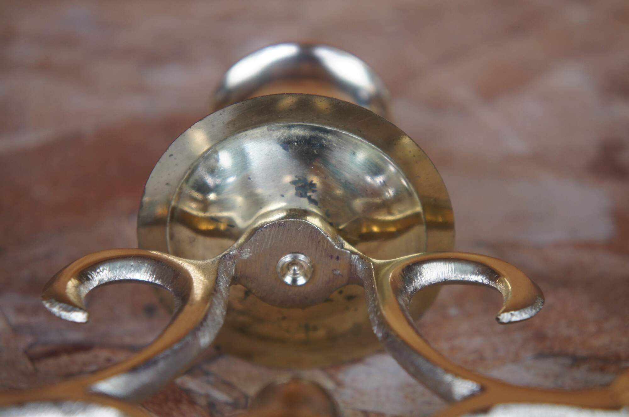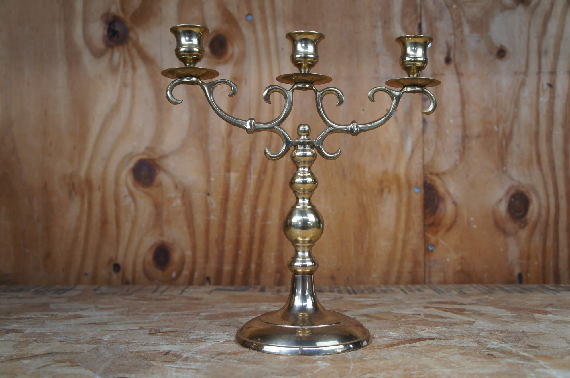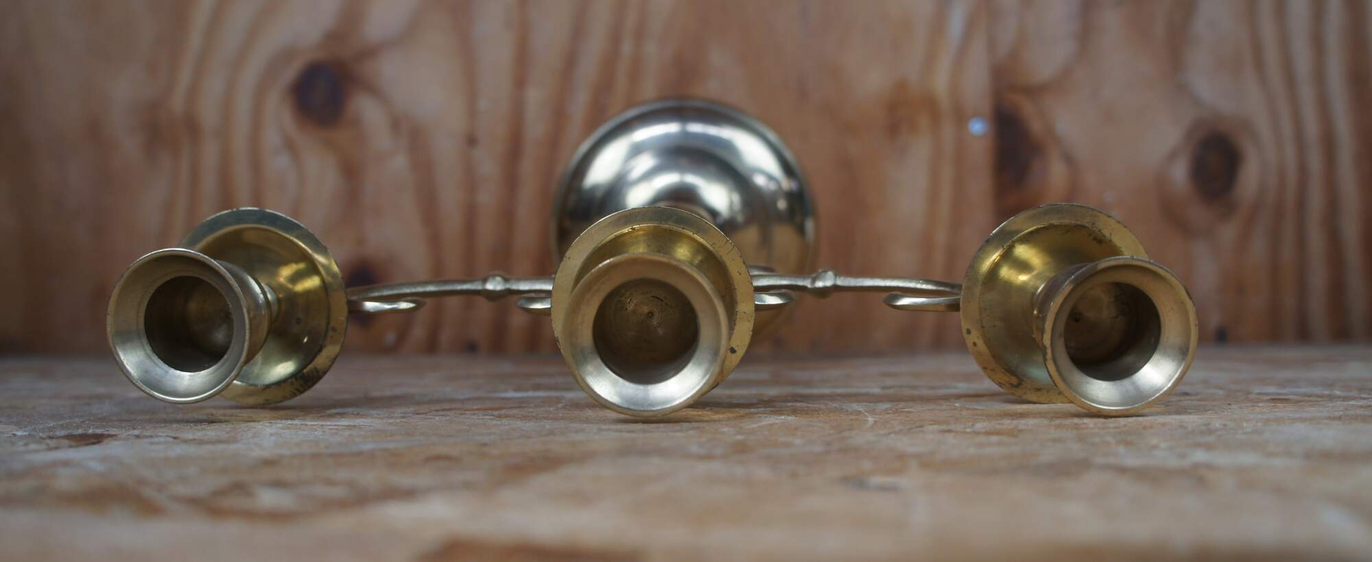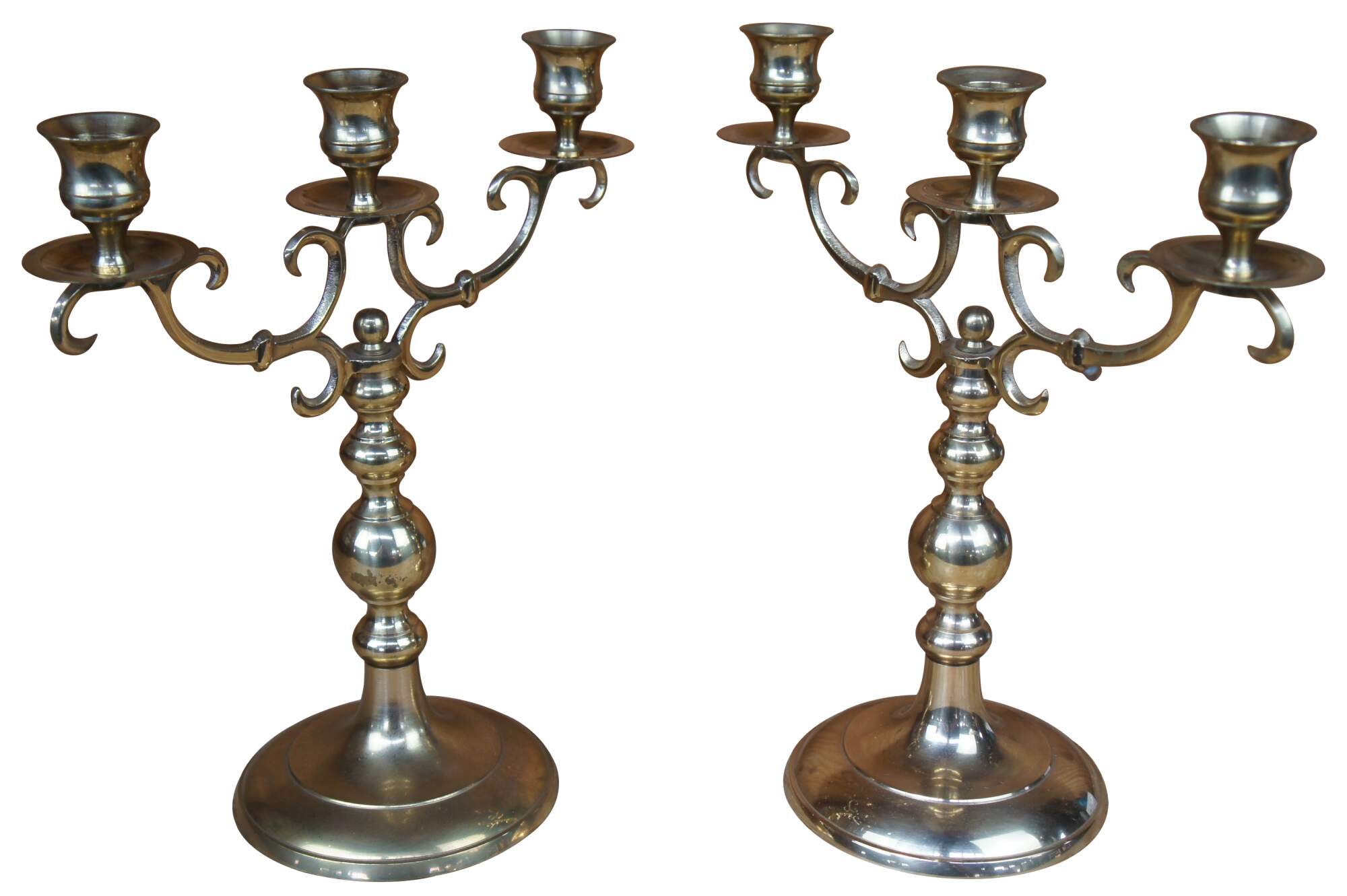 2 vintage brass three candle candelabras stamped Japan on the bottom.
