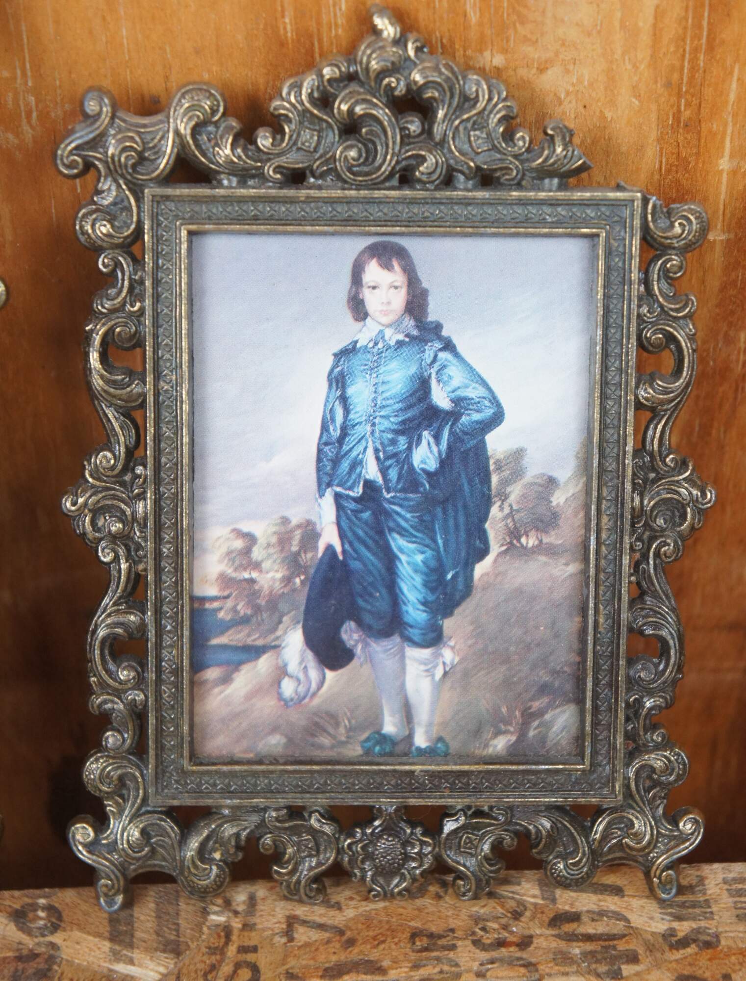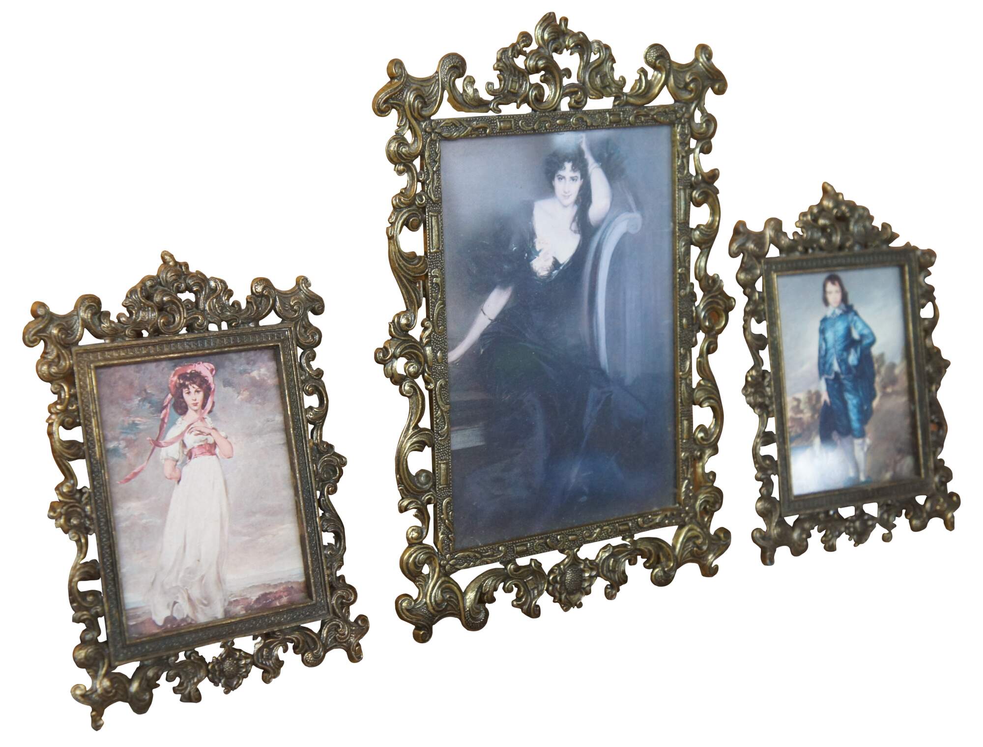 Set of three gold wall plaques/frames made in Italy featuring prints of "Lady Colin Campbell" by Giovanni Boldini, "Pinkie" by Thomas Lawrence, and "The Blue Boy" by Thomas Gainsborough.