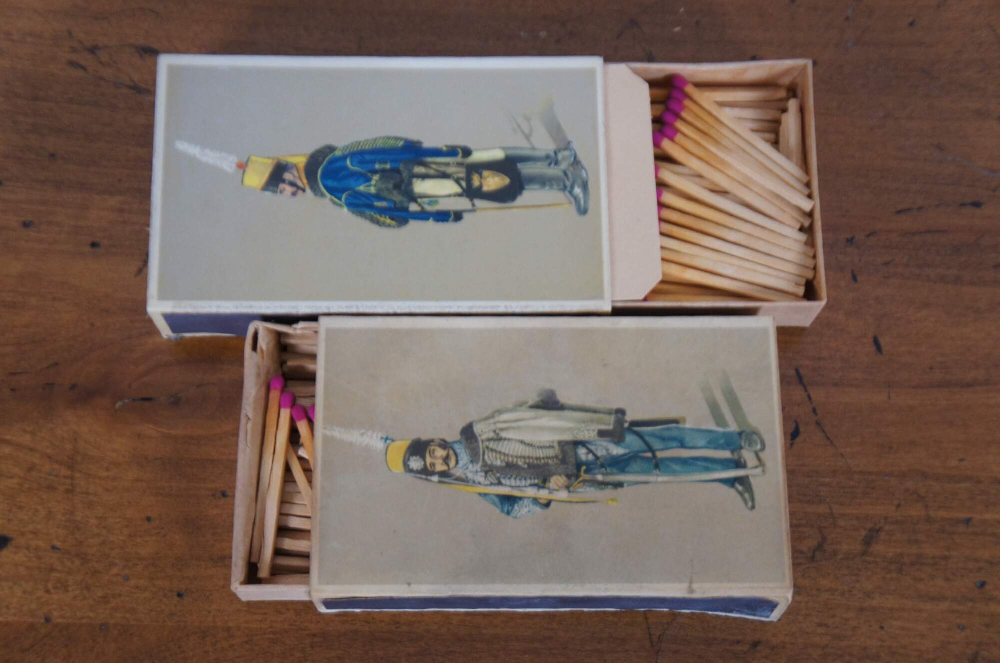 Lot of six mid 20th century large match boxes portraying a variety of Swedish military dress from the 18th and 19th centuries, made by the Swedish Match Company.