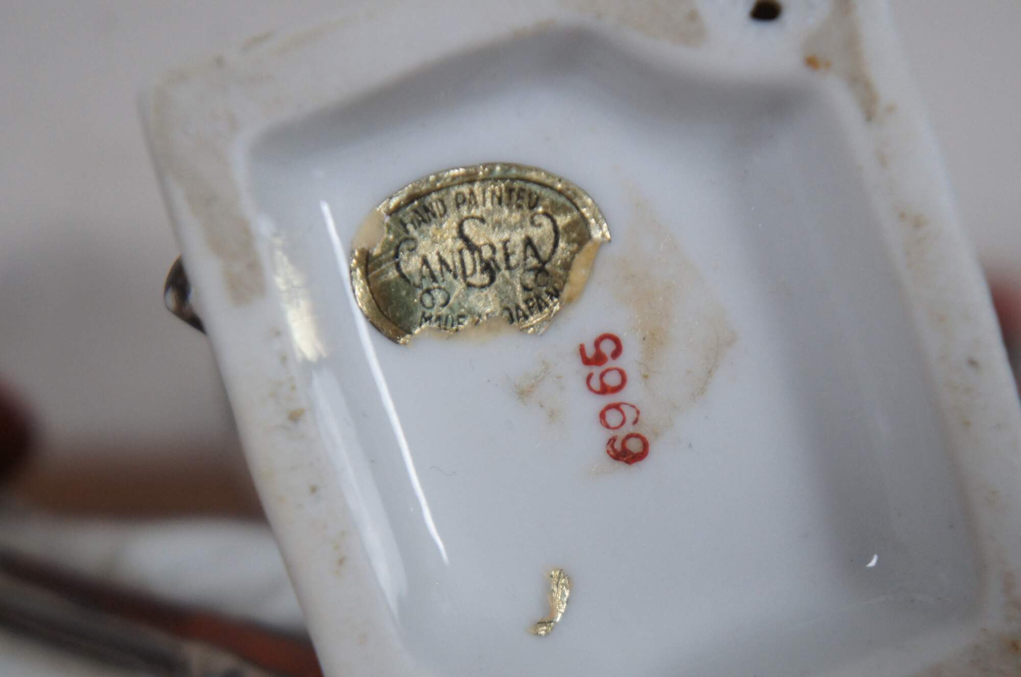 Set of four vintage Andrea by Sadek porcelain figurines portraying various Revolutionary War soldiers, product number 6965. Set includes 2nd Connecticut Light Horse 1777, Virginia Light Dragoons 1776, 2nd Maryland Infantry 1777, and Morgan’s Virginia Riflemen 1776.