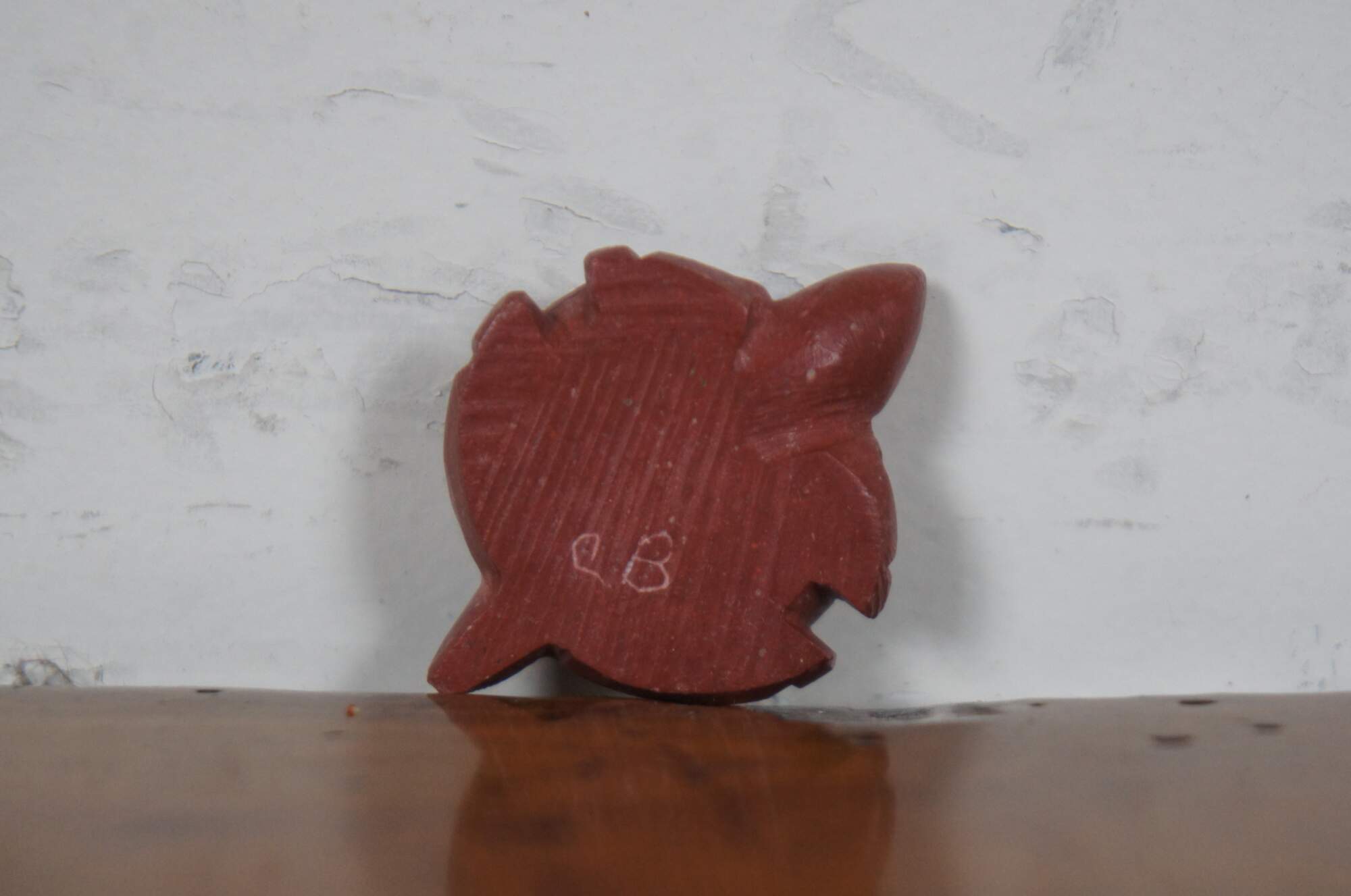 Vintage hand carved red jasper turtle figurine; signed CB.