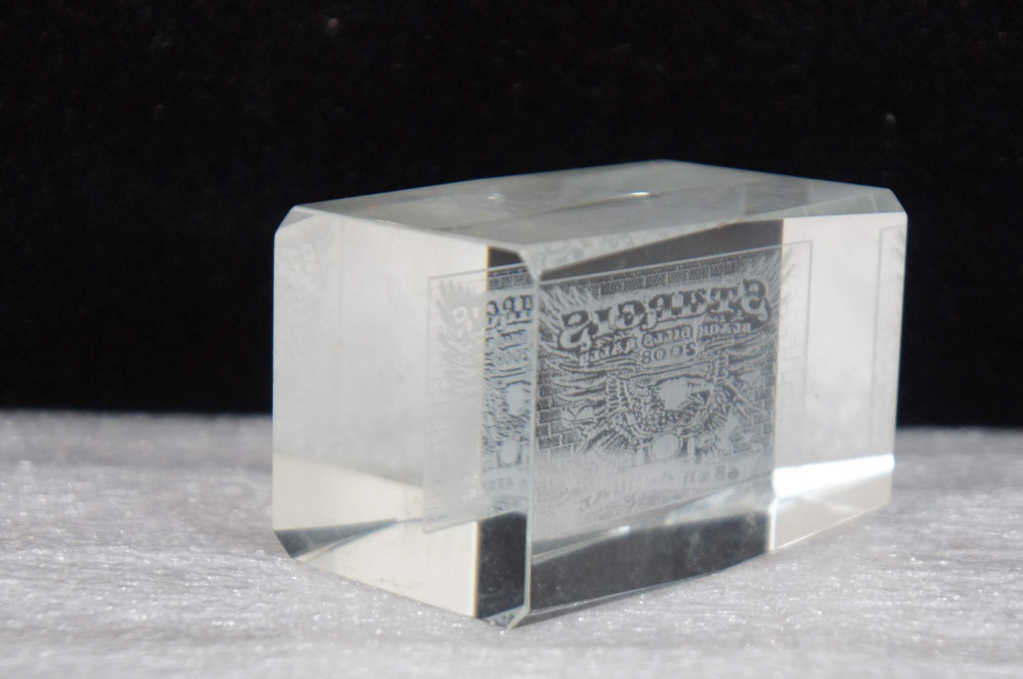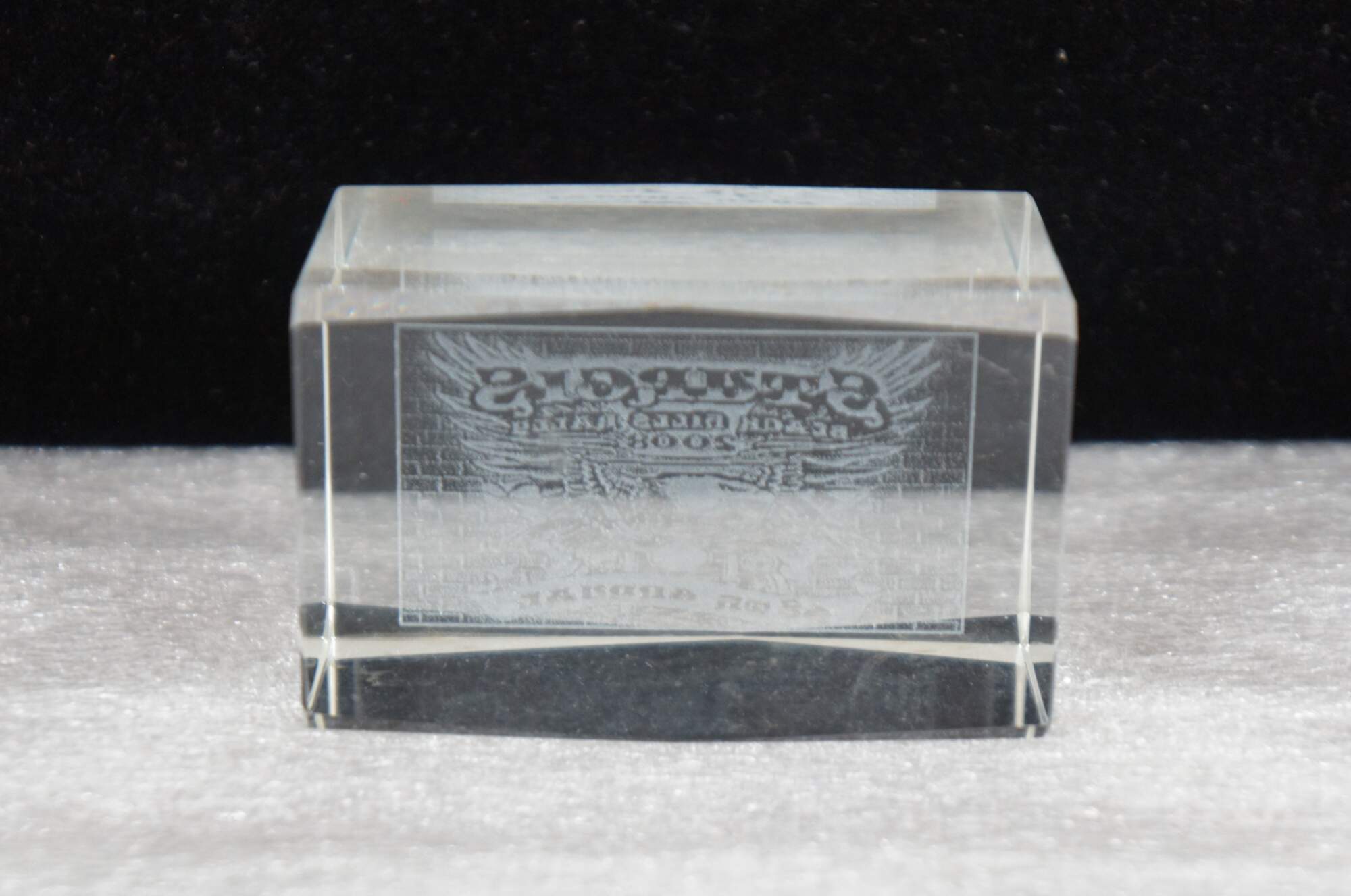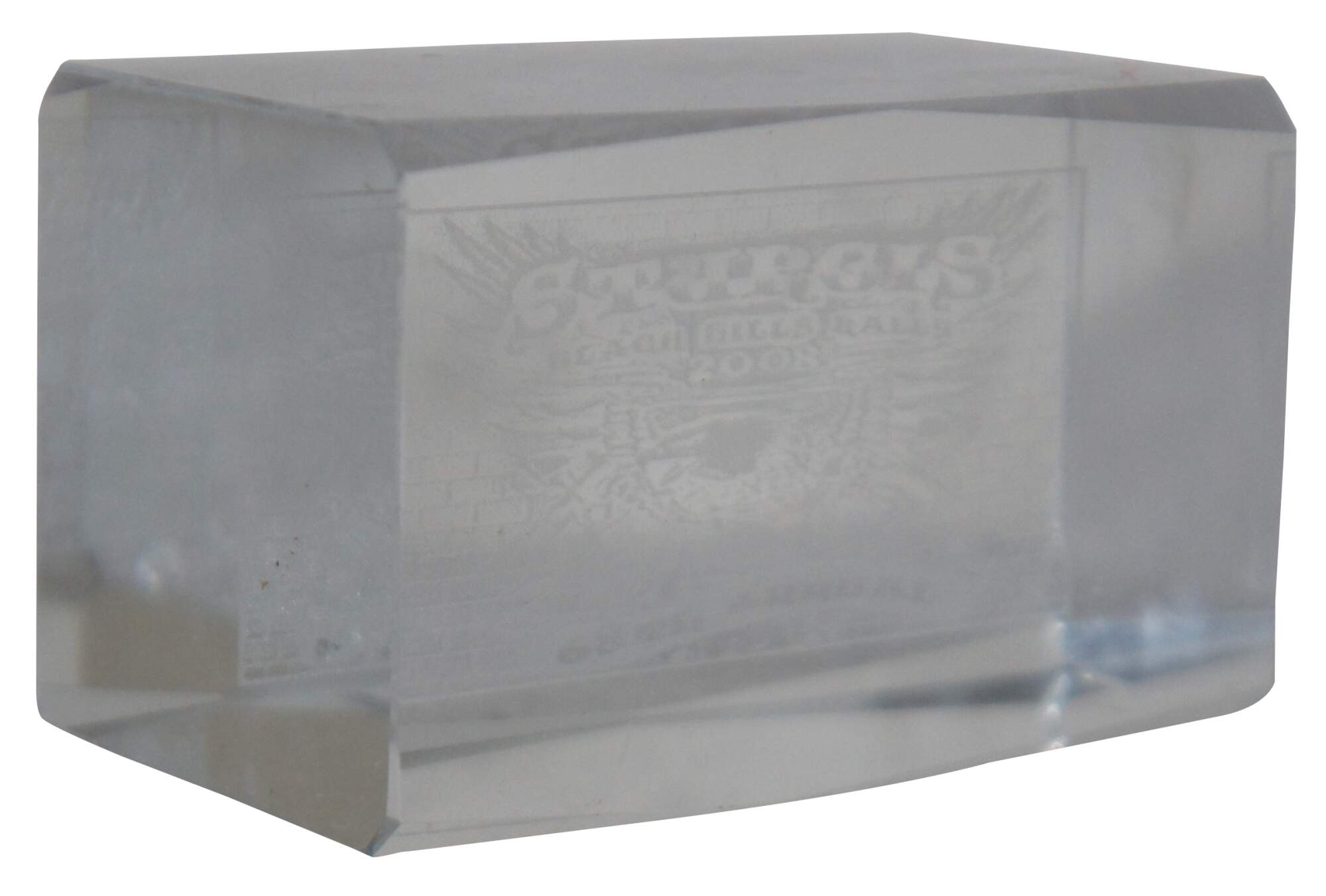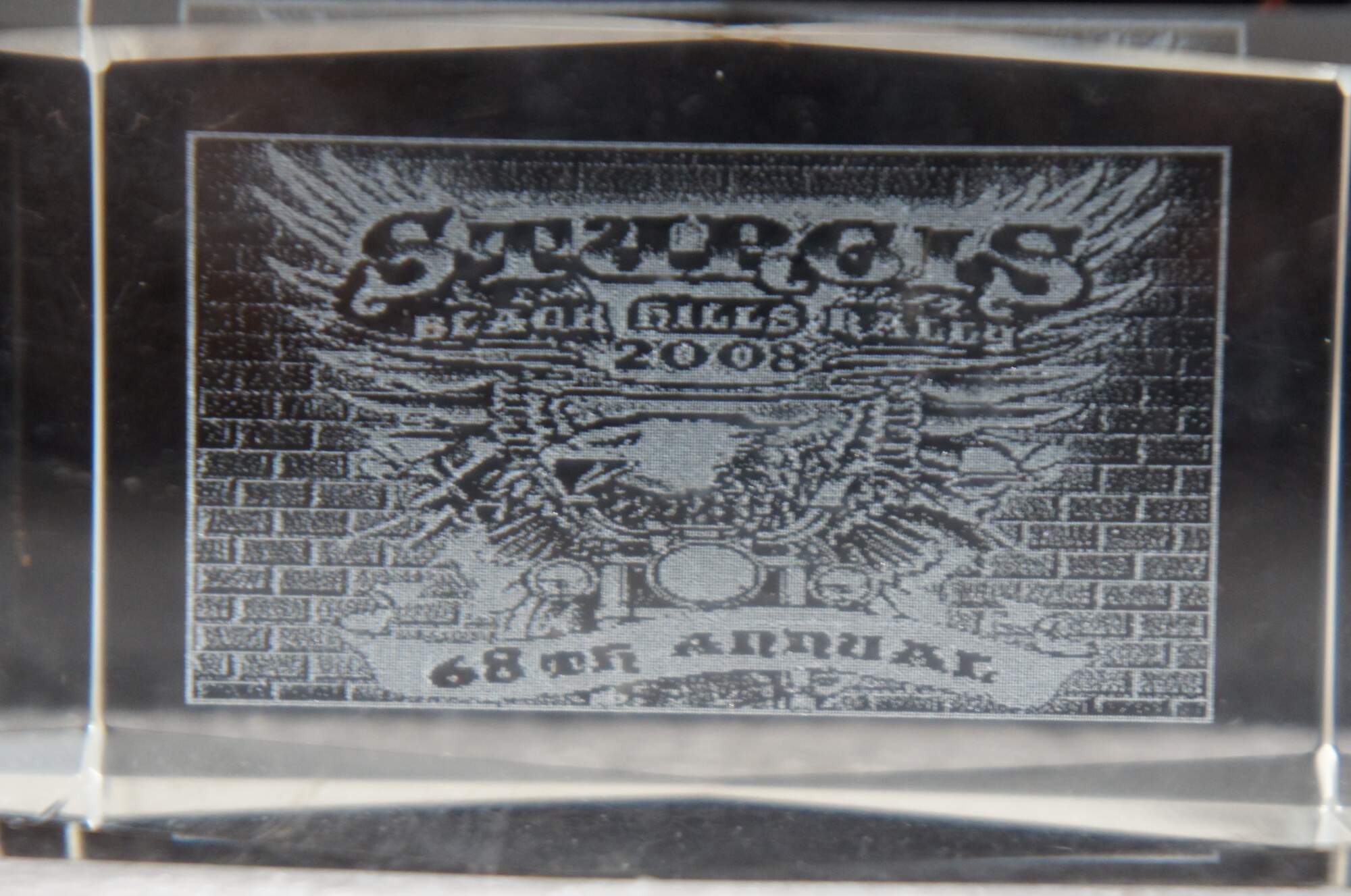 3D etched glass souvenir paperweight from the 2008 - 68th Annual Sturgis Black Hills Motorcycle Rally.