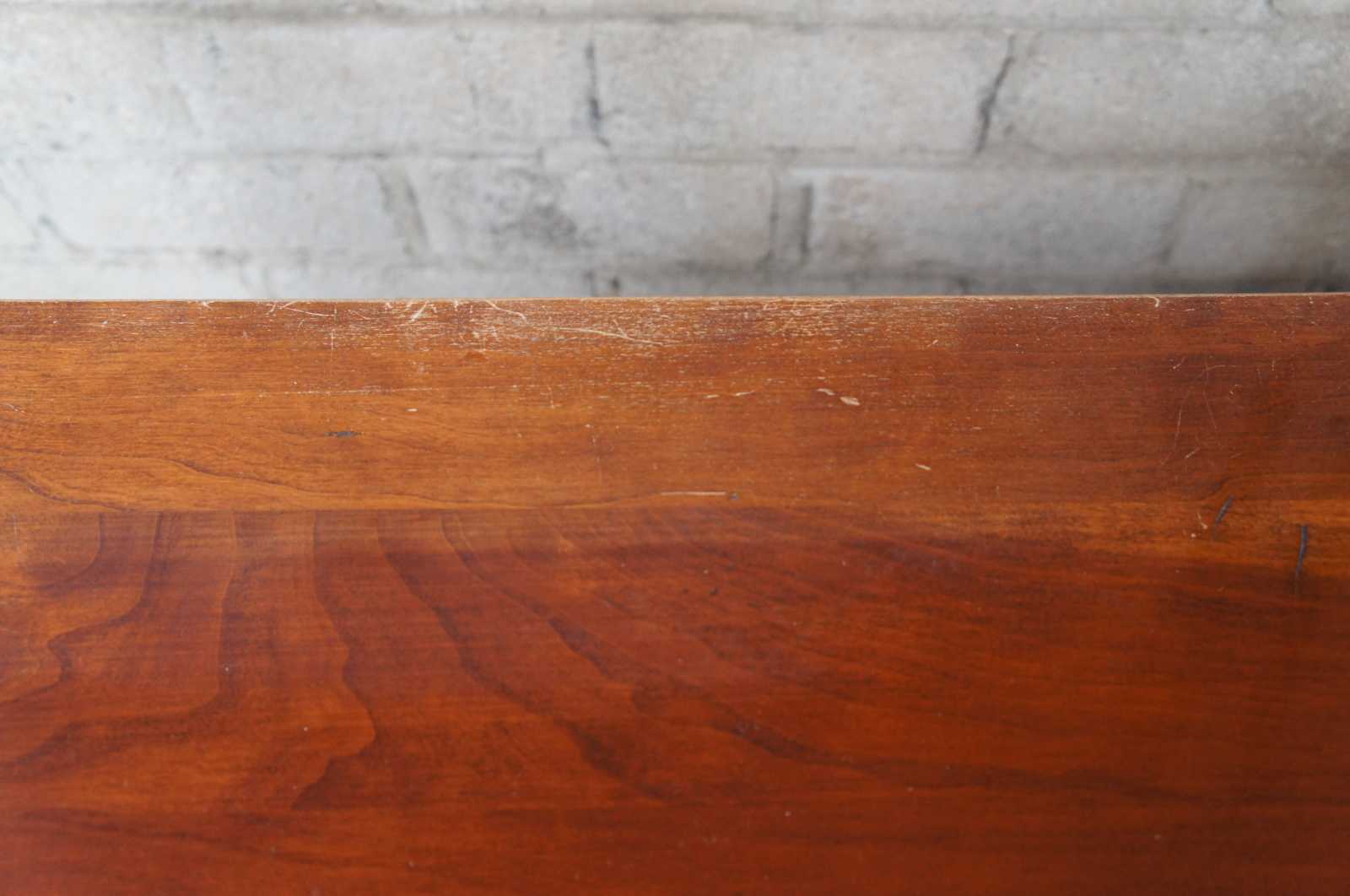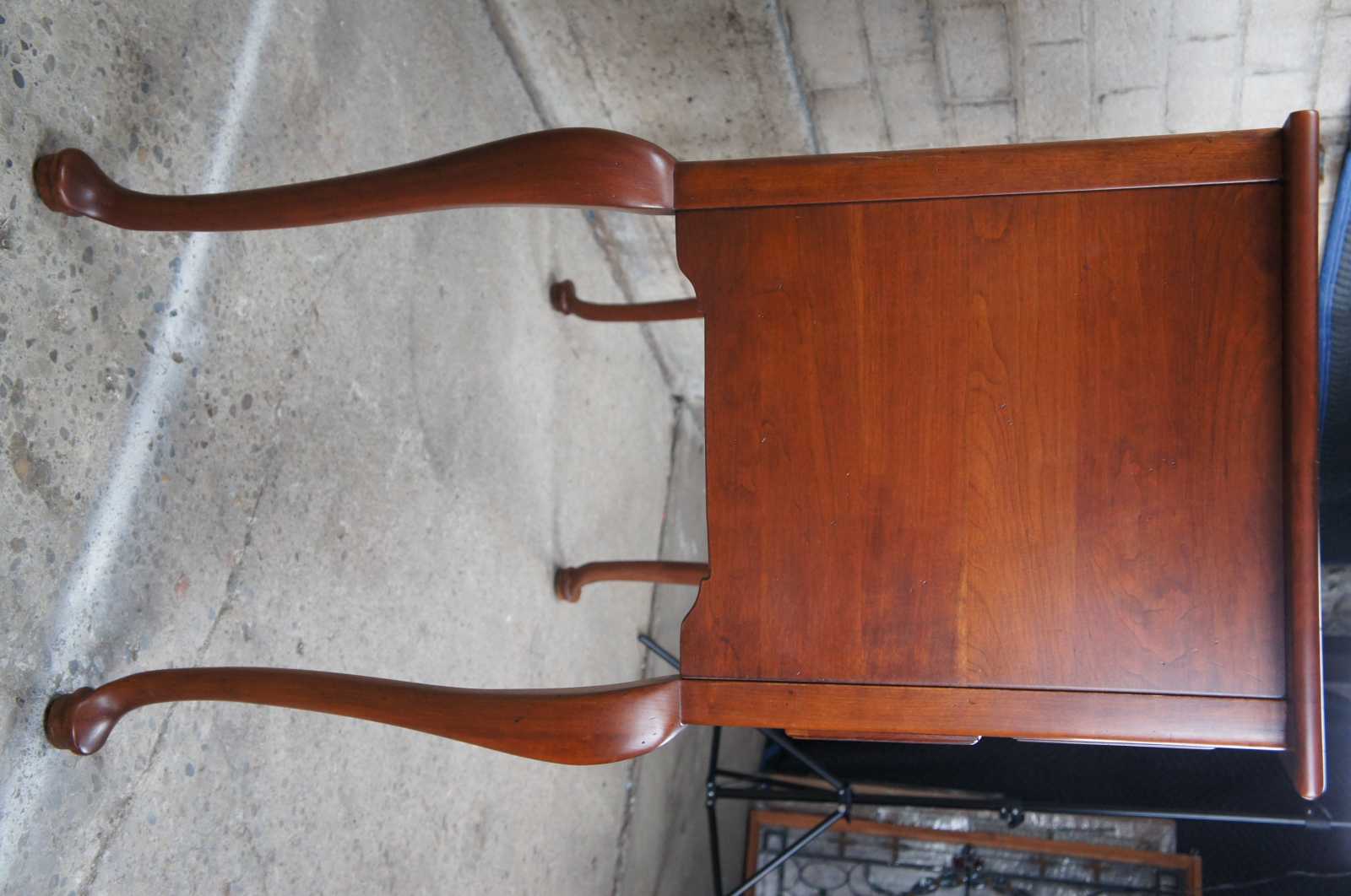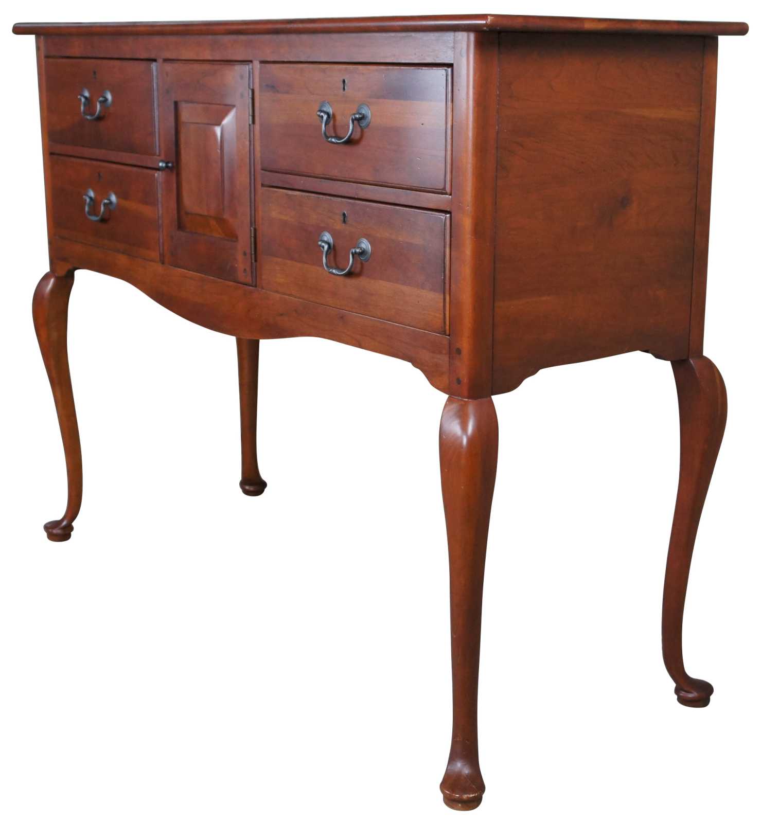 An elegant solid cherry sideboard, server or buffet. by Bob Timberlake for Lexington, circa 1980s. American made farmhouse styling. Features a rectangular frame with central cabinet flanked by four dovetailed drawers. Frame is supported by long queen anne style cabriole legs leading to pad feet. Includes a felt lined drawer and brass bale hardware. #833-869