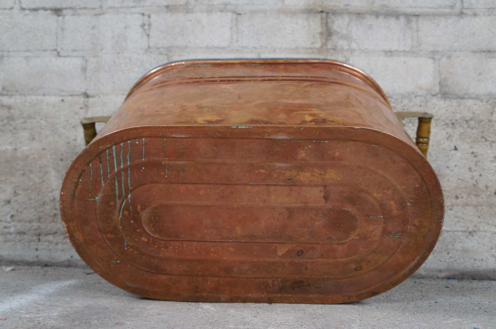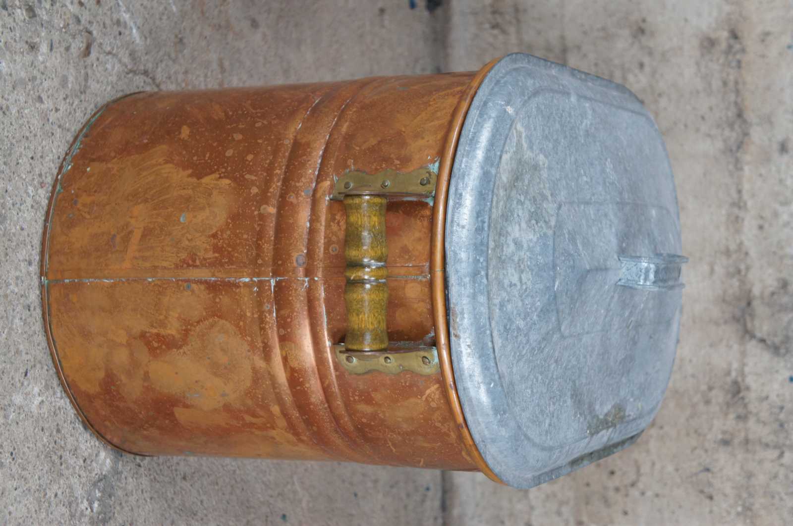 Antique Galvanized Copper Boiler Wash Tub Farmhouse Fireplace Coal Log Bin Lid 28"