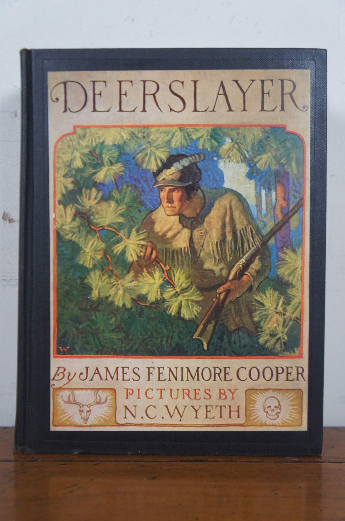 Set of eight antique hardcover books published between 1911 and 1925 by Charles Scribner's Sons and illustrated by N.C. Wyeth. Set includes: ""Treasure Island"" by Robert Louis Stevenson (1911); ""The Mysterious Island"" by Jules Verne (1919); ""The Boy's King Arthur,"" edited by Sidney Lanier (1924); ""David Balfour"" by Robert Louis Stevenson (1924); ""The Last of the Mohicans"" by James Fenimore Cooper (1924); ""The Deerslayer"" by James Fennimore Cooper (1925); ""Kidnapped"" by Robert Louis Stevenson (1925); and also ""Quentin Durward,"" by Sir Walter Scott, illustrated by C. Bosseron Chambers (1923). “Born in Needham, Massachusetts, N C Wyeth became one of the foremost book illustrators and mural painters in America in the early part of the 20th century. He did illustrations for most of the major magazines and book publishers in the United States.