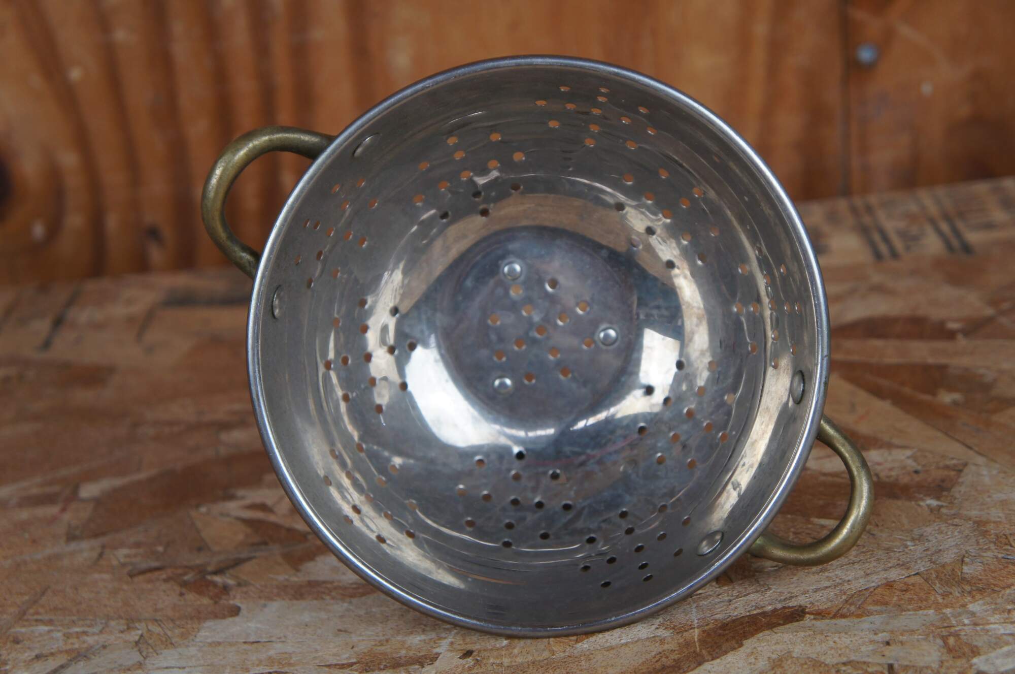 Vintage Stainless Copper Brass Handled Strainer Colander Kitchen Cookware 8"