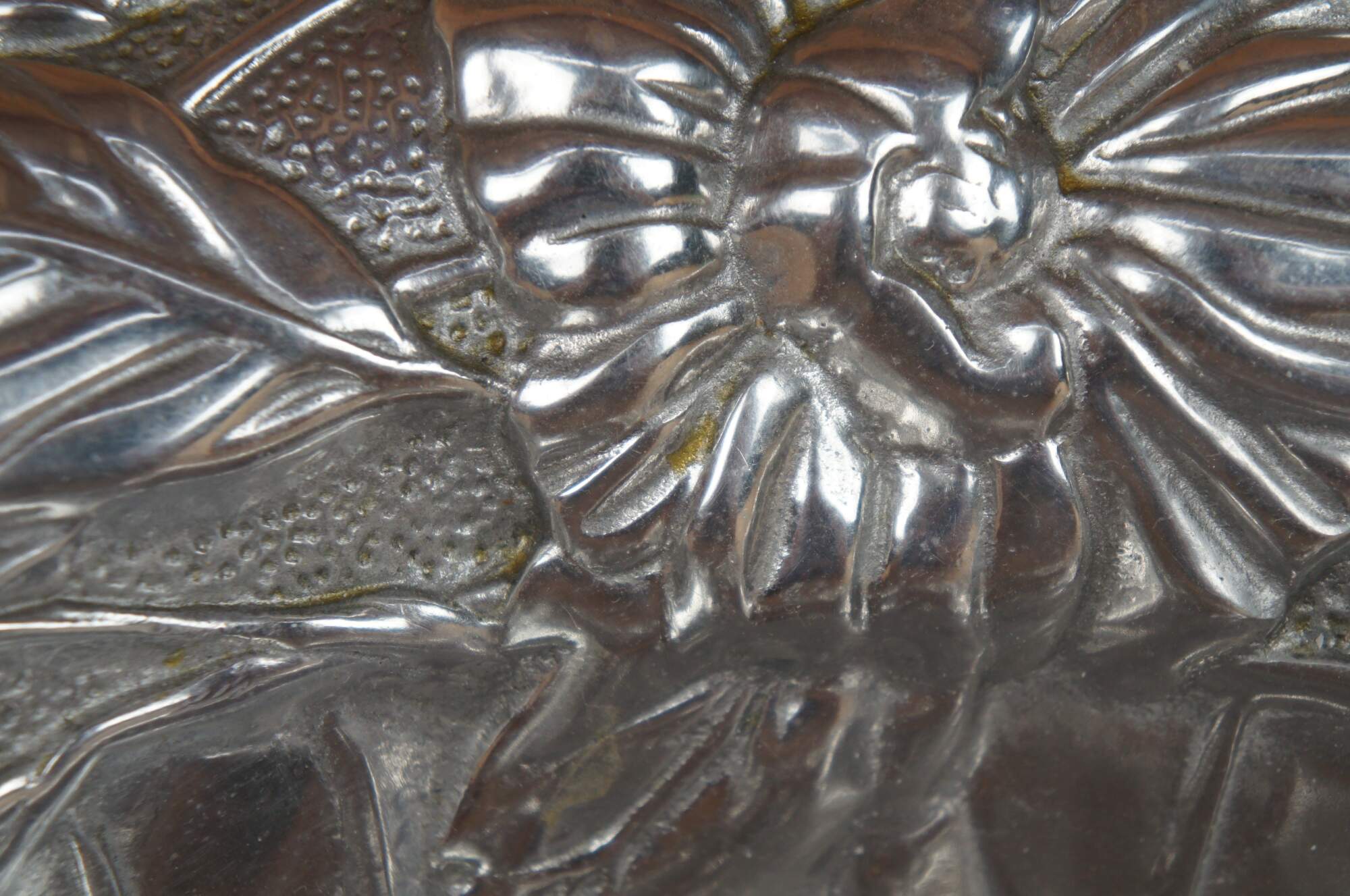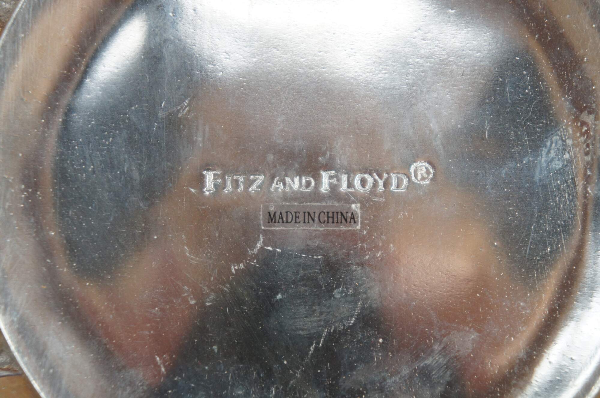 Fitz and Floyd metal aluminum bowl or dish with repousse floral and leaf design.