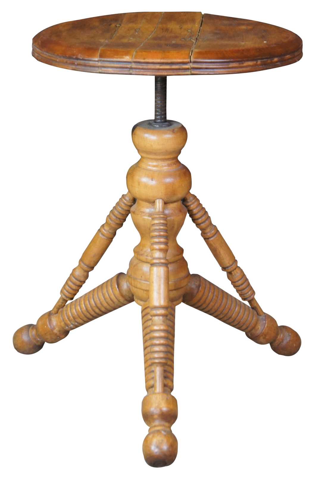 Tonk Victorian Modernist Piano, Organ or Vanity Stool. Circa last quarter of 19th cenutry. Made from birch with a geometric ribbed frame and adjustable seat.