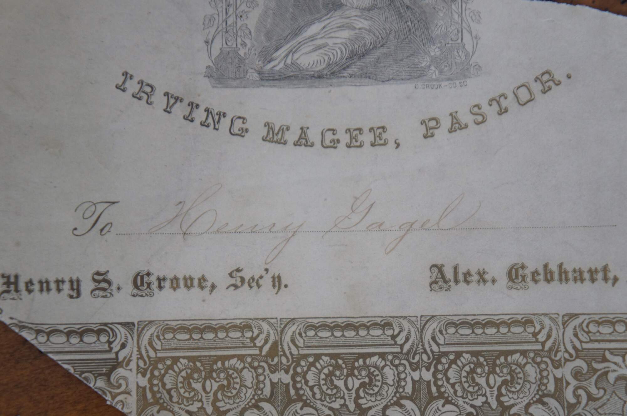 Pair of antique 19th century certificates from the First English Lutheran Sabbath School of Dayton, Ohio.