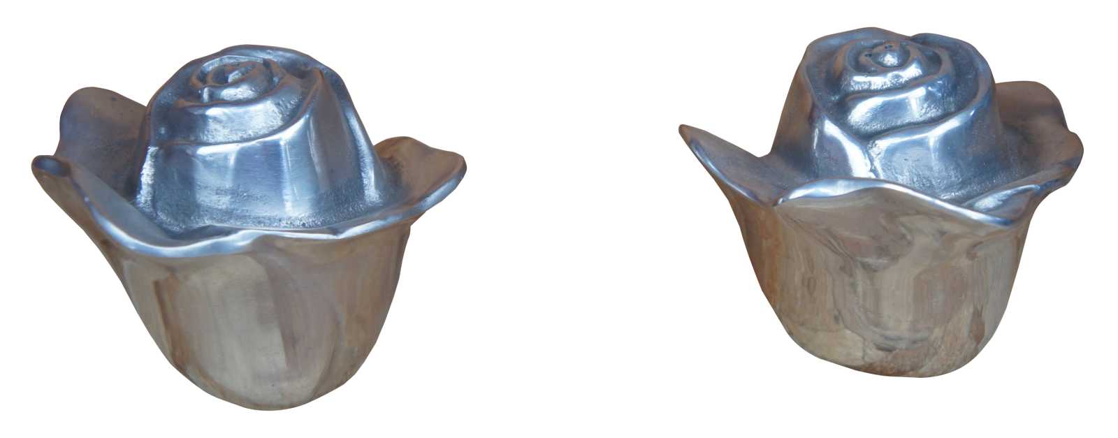 Vintage Pewter Aluminum Rose Bud Flower Salt & Pepper Shakers Floral 3"
