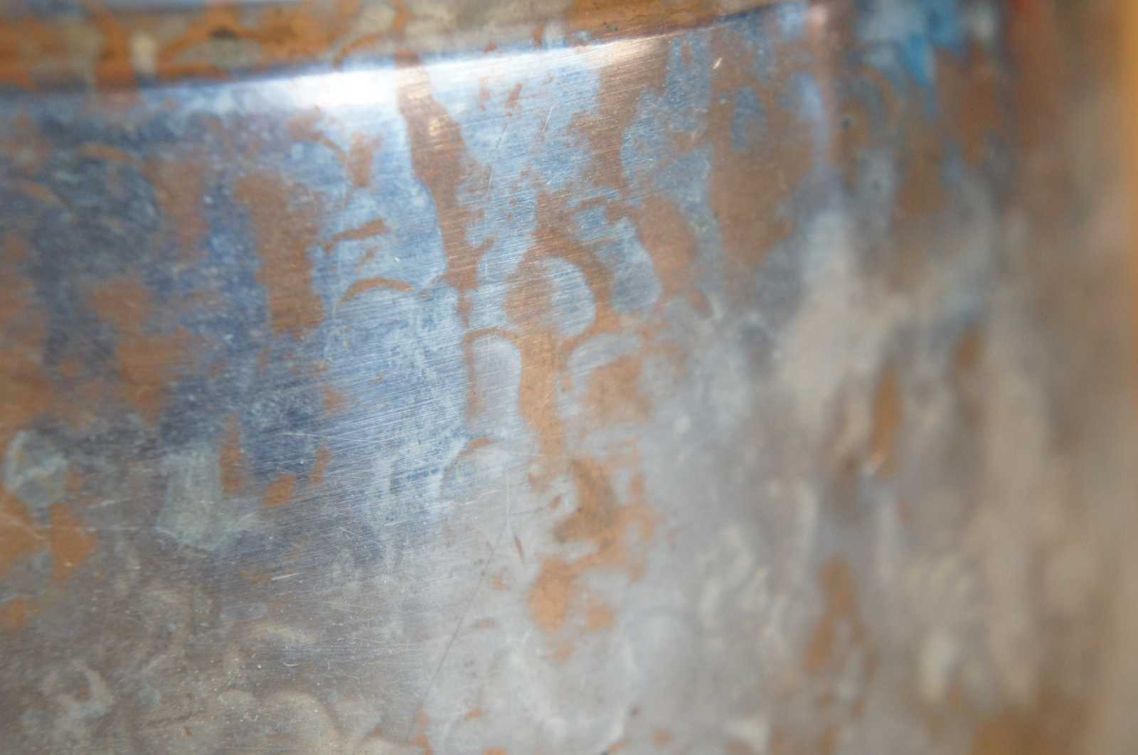Good antique condition, wear and distressing commensurate with age and use, dents, wear to finish, oxidation / tarnish.