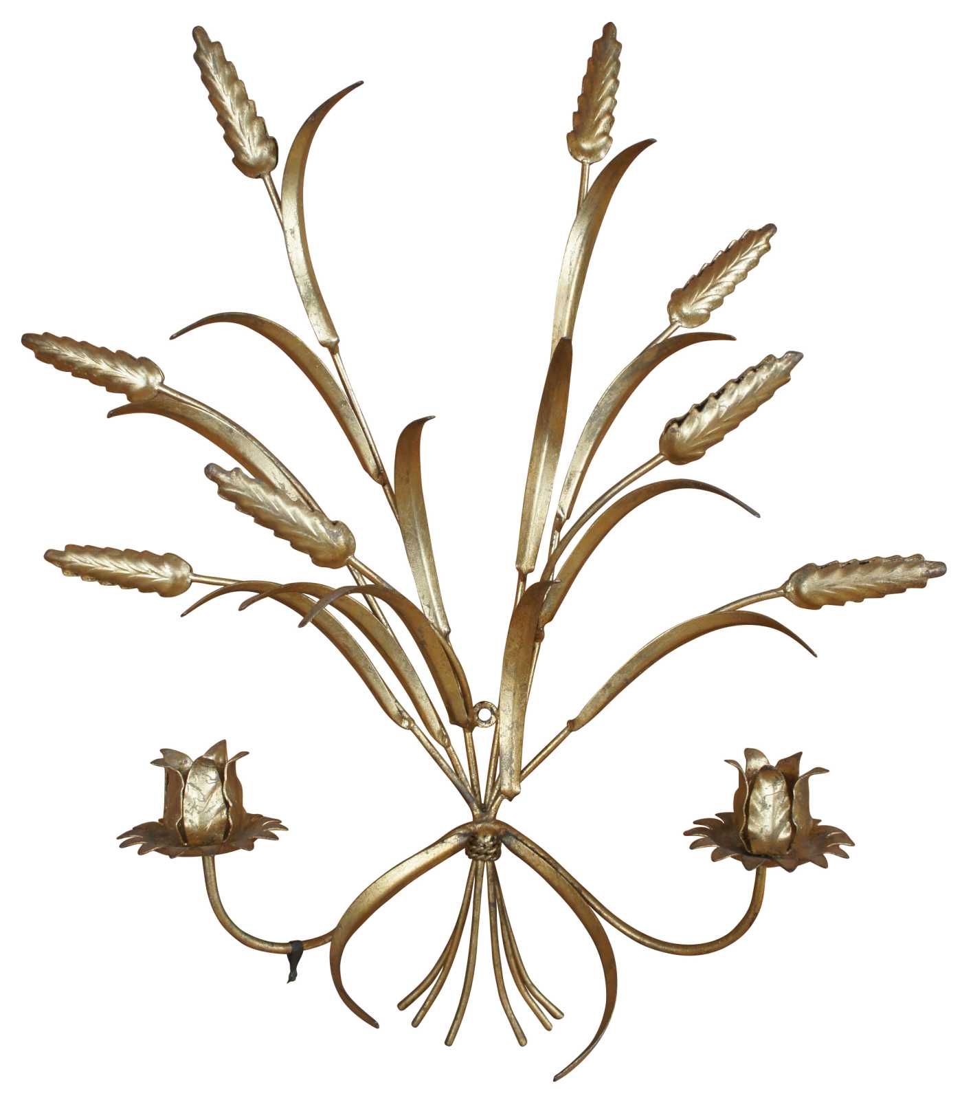 2 Italian Mid Century Hollywood Regency Gold Wheat Sheaf Candle Wall Sconces 20"