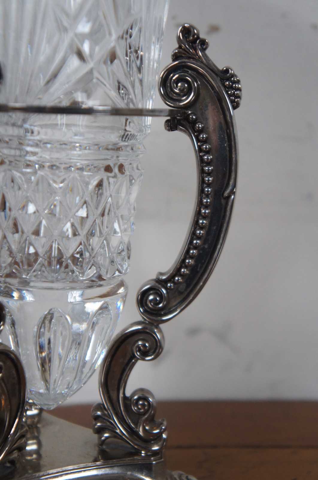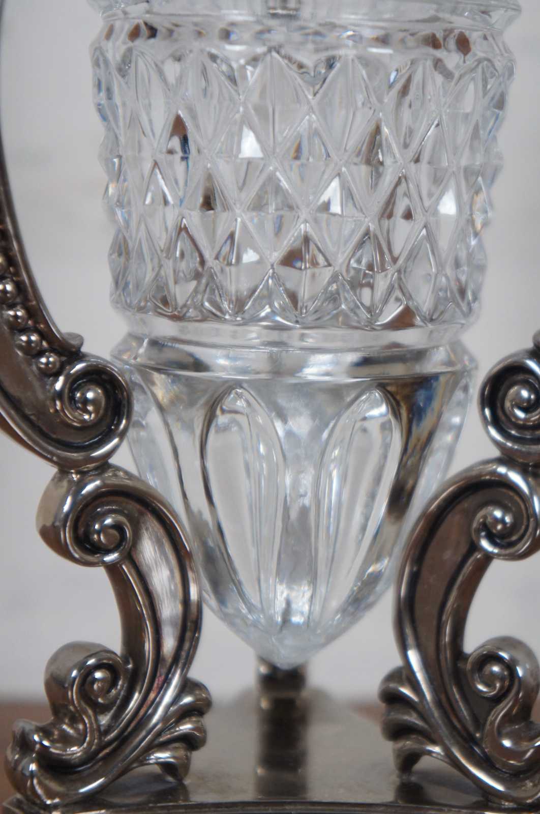 Vintage Godinger Shannon cut crystal tulip vase set in an ornate French designed silver toned stand.