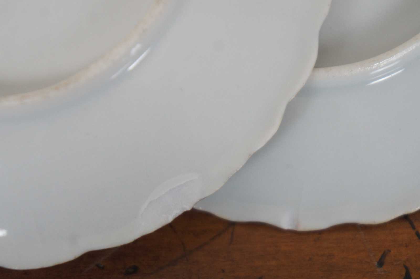 Good Overall - Gentle wear to paint/gilding; one chip under edge of saucer; slight crazing