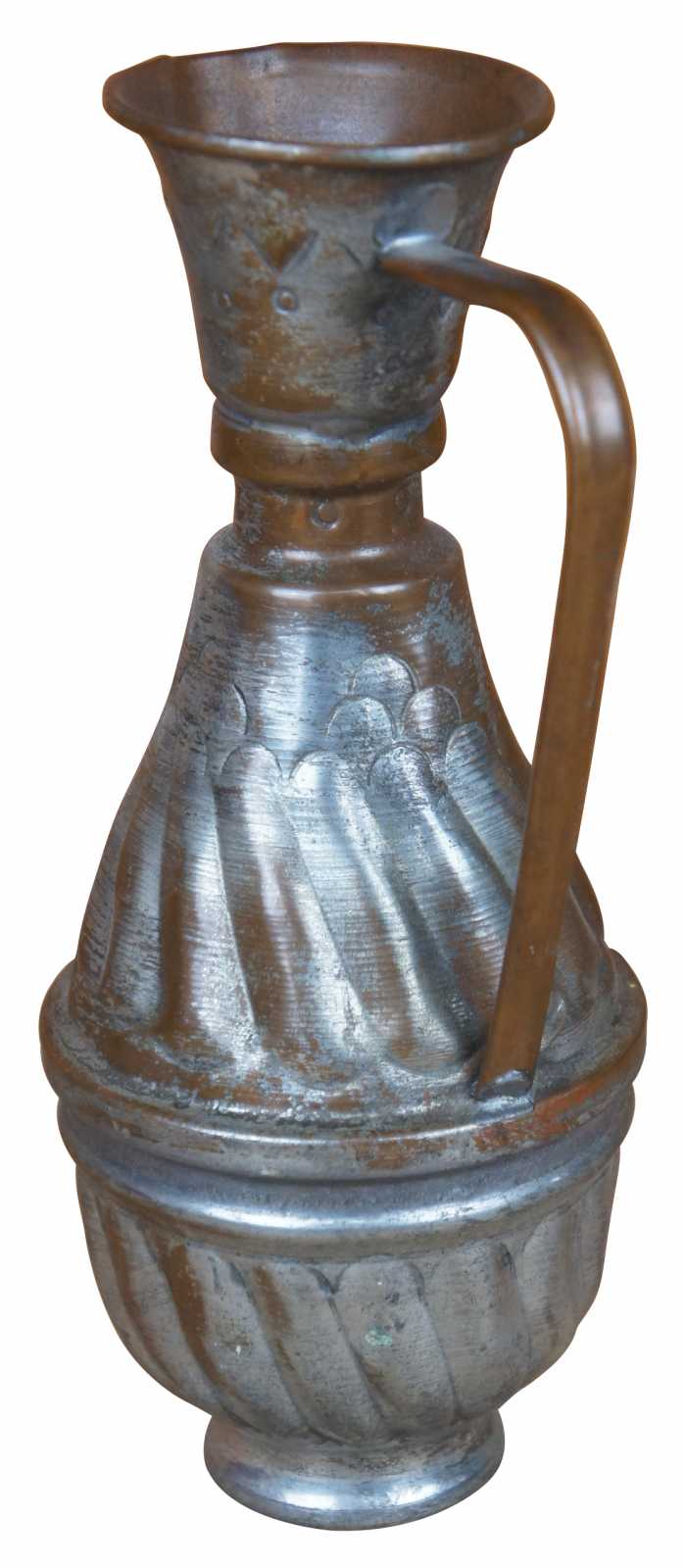 Vintage Middle Eastern hammered copper watering can, pitcher, jug or ewer with unique hourglass form.