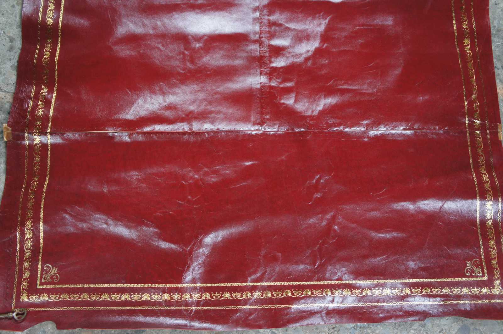 Antique tooled red or burgundy leather desk / table writing surface pad. Purchased in London in the 1980s.
