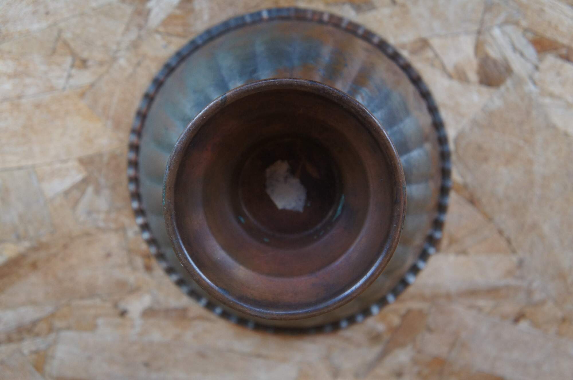 Vintage hammered and engraved copper footed bowl or compote featuring a scalloped rim with etched and fluted star design. Made in Egypt.